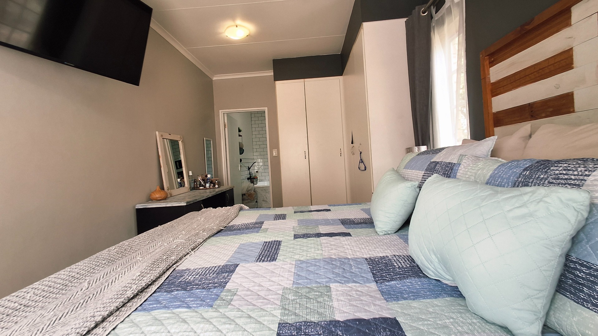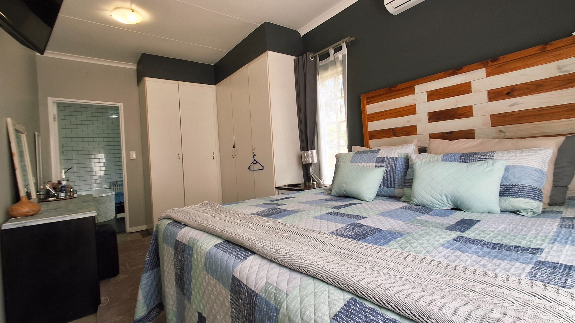 Upon entering, residents are greeted by an open-plan lounge, creating a welcoming and versatile space for relaxation and entertaining. The well-appointed kitchen is ready to cater to culinary needs. The property includes one main bathroom, complemented by an ensuite bathroom and an additional guest toilet, ensuring practicality for all occupants. Air conditioning is installed in the main bedroom only, providing comfort during warmer months.