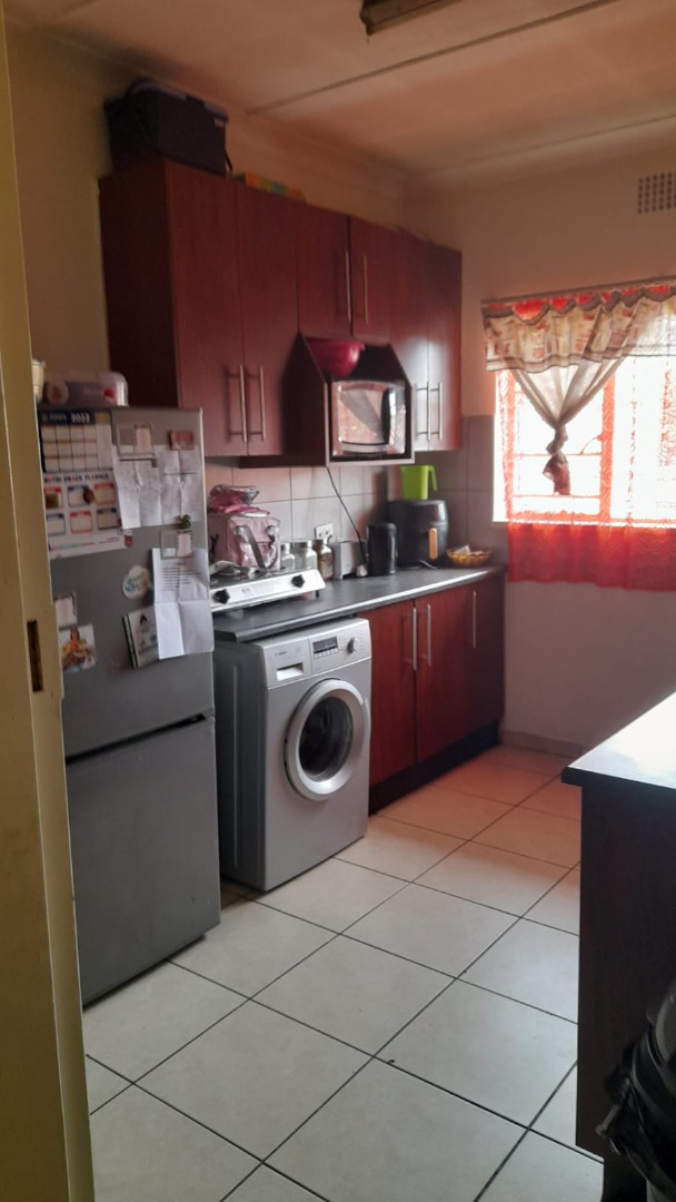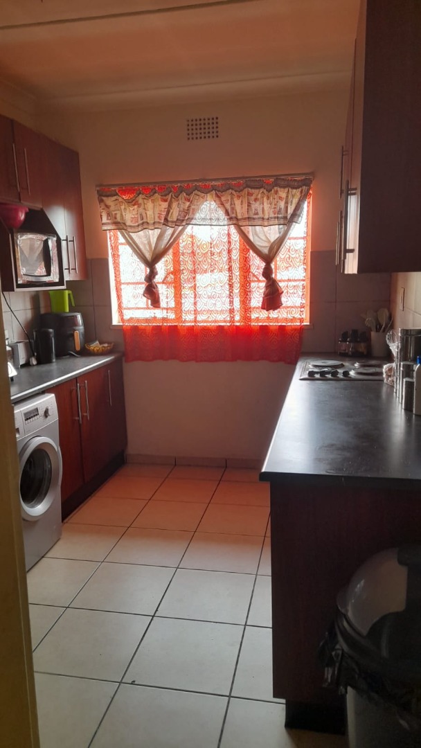 This inviting 84 sqm apartment offers comfortable suburban living within a secure complex in Wychwood, Germiston, South Africa. The interior features a well-appointed lounge and a dedicated dining room, providing ample space for relaxation and entertaining. The modern kitchen is a highlight, boasting dark wood-toned cabinetry, durable tiled flooring, and good natural light. It comes equipped with a built-in hob and designated spaces for a washing machine, microwave, and refrigerator, ensuring functionality and convenience. The residence comprises two comfortable bedrooms, offering private retreats. Complementing these are one and a half bathrooms, including a full bathroom with a bathtub and tiled walls, designed for everyday comfort. The layout ensures a practical flow throughout the living spaces. Residents benefit from the peace of mind offered by living within a security complex. The property includes one garage and an additional dedicated parking space, providing secure accommodation for vehicles. This apartment is ideal for those seeking a convenient and secure lifestyle in a well-established community. This desirable suburban area is known for its accessibility and community atmosphere, making it a popular choice for homeowners. Key Features: * Two Bedrooms * One and a Half Bathrooms * Modern Kitchen with Ample Storage * Dedicated Lounge and Dining Areas * 84 sqm Floor Size * One Garage and Additional Parking * Located in a Security Complex * Suburban Living