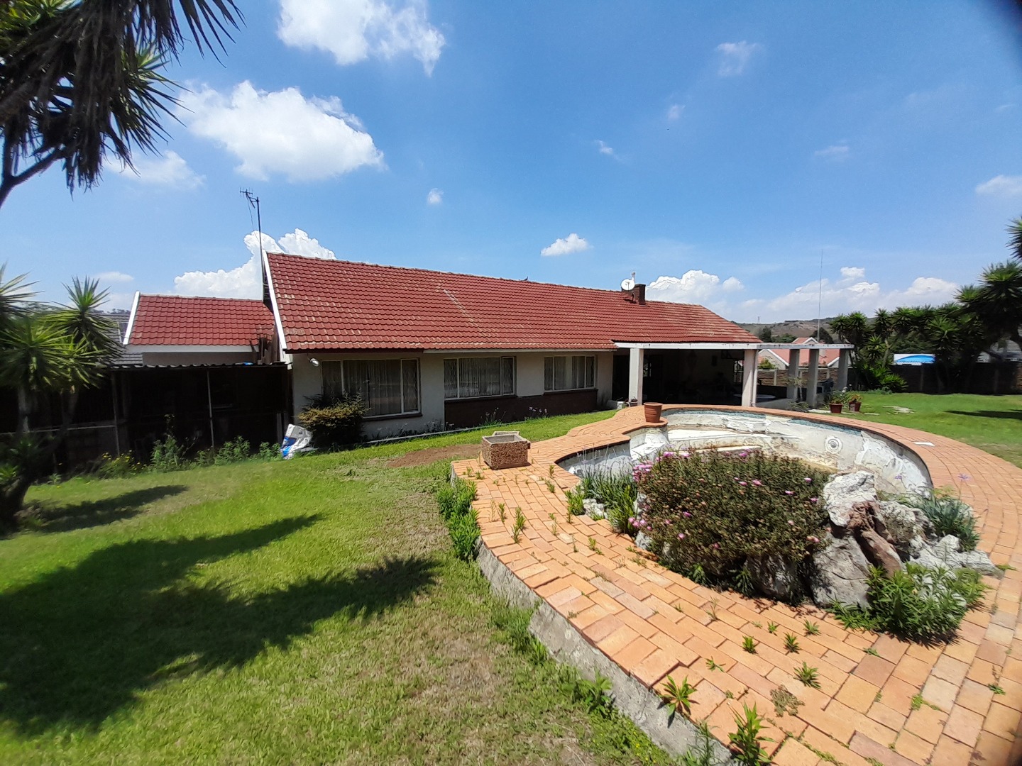 This charming 3-bedroom, 2-bathroom residence in Alan Manor, Johannesburg, offers a blend of comfort and potential. The property immediately impresses with its well-maintained exterior, featuring a distinctive paved driveway leading to a convenient carport and two garages, all secured by a sturdy brick boundary wall.