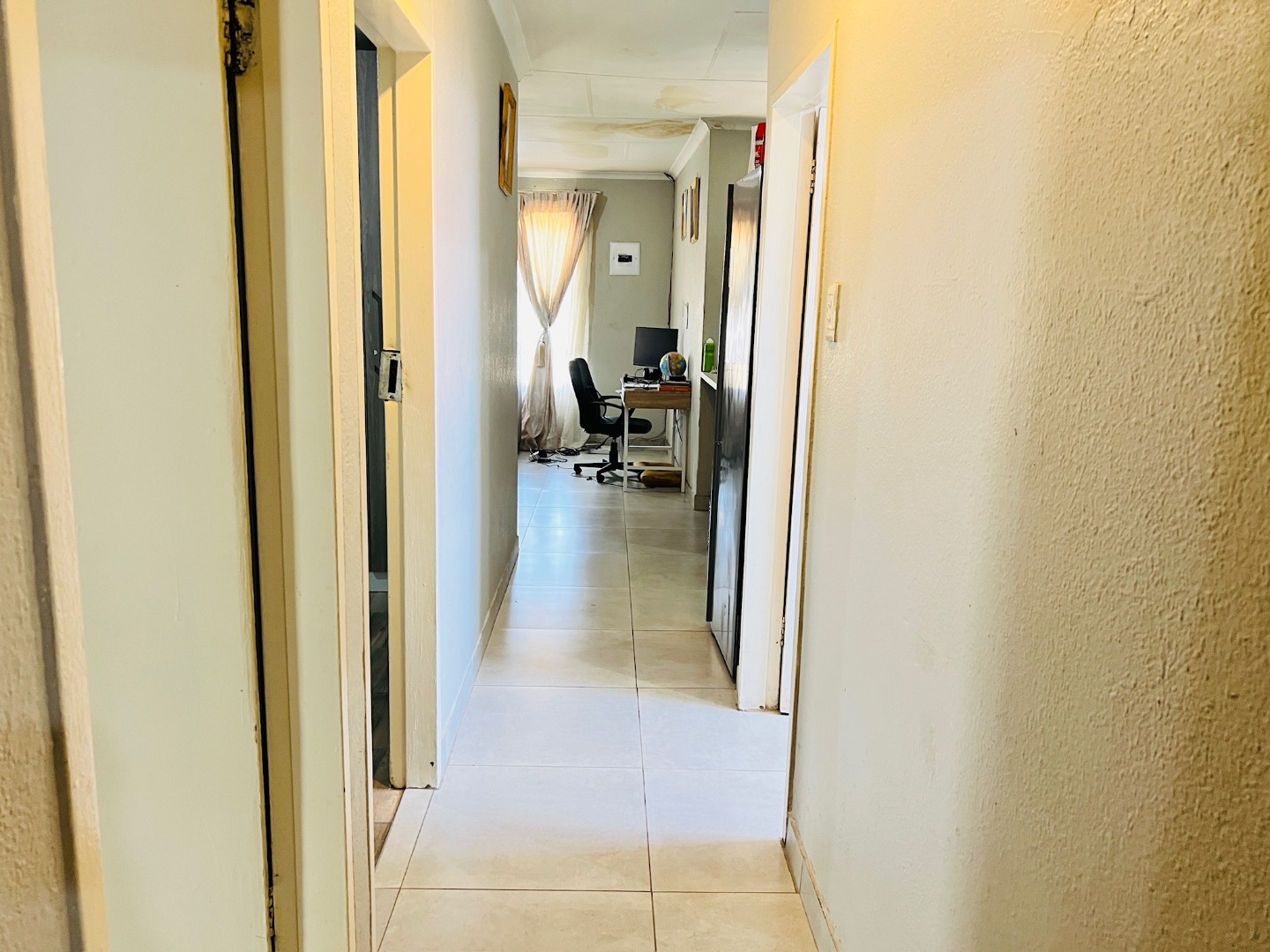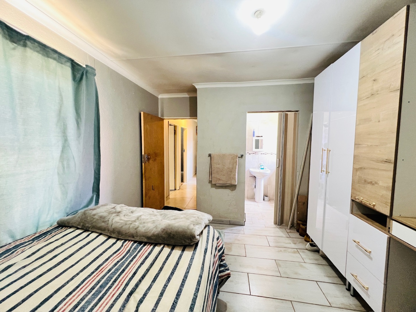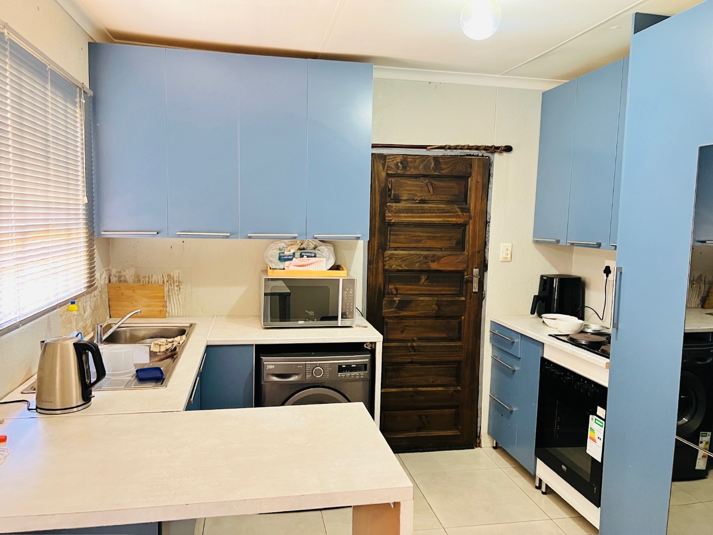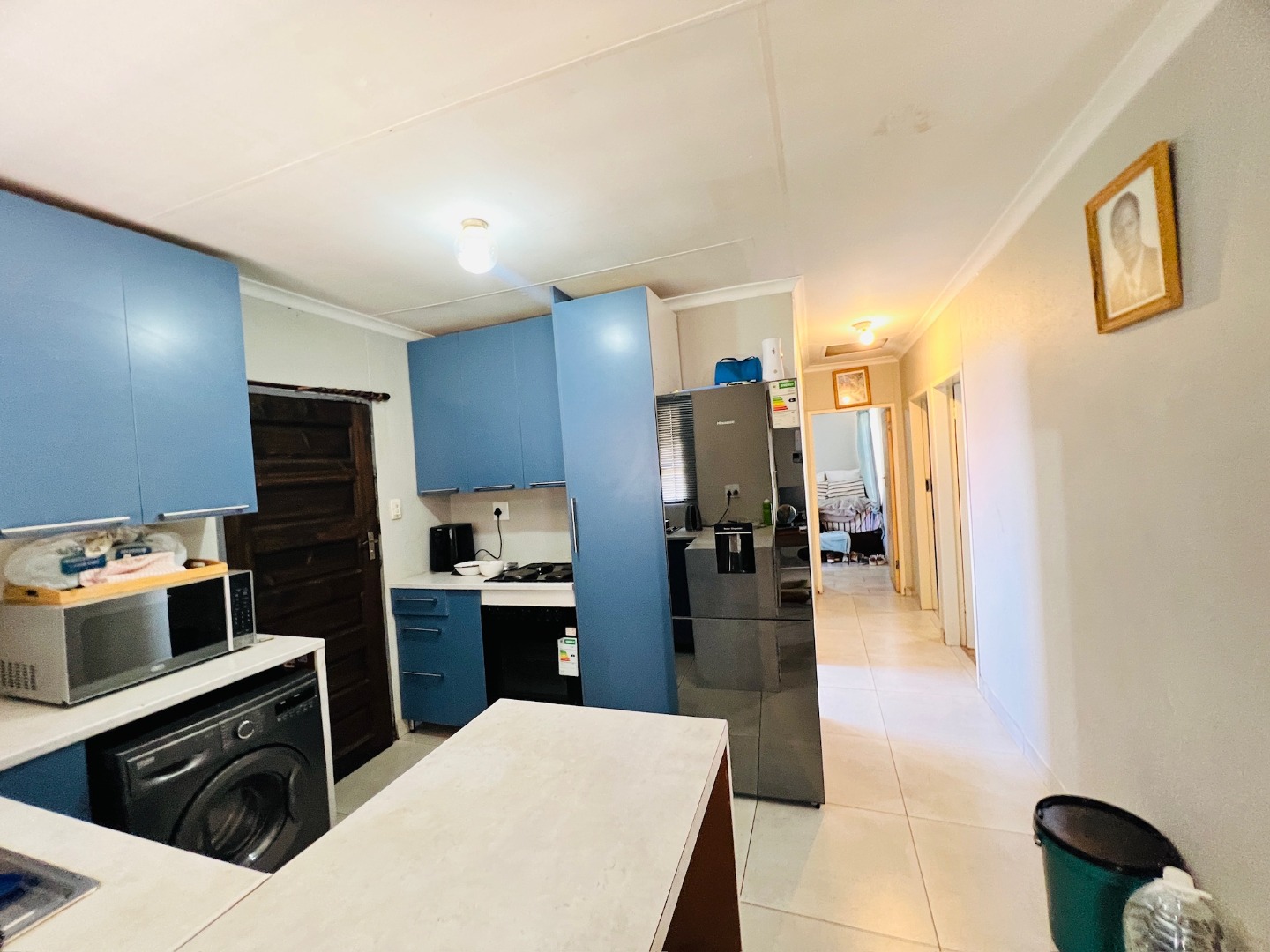 Discover this charming residential property located in the established suburb of Alveda, Johannesburg. This home offers a practical layout designed for comfortable living, featuring three bedrooms and two bathrooms, making it an ideal choice for families or first-time buyers seeking a well-situated residence. The interior boasts a modern kitchen, a true highlight of the home. It is equipped with vibrant light blue cabinetry, integrated appliances including an oven, hob, and washing machine, all set against durable tiled flooring. A large stainless steel Hisense refrigerator further enhances the contemporary feel, providing both style and functionality. The kitchen seamlessly connects to a dining area, creating an inviting space for meals and gatherings. Each of the three bedrooms is designed for comfort, offering ample space and built-in wardrobes for convenient storage. The two bathrooms are neatly appointed with tiled walls and floors, featuring a pedestal sink, toilet, and a bathtub with an integrated shower function, ensuring everyday convenience. Externally, the property sits on a 324 sqm erf, presenting a neat kerb appeal with a tiled roof and light-colored walls. A covered carport provides secure parking for two vehicles, complemented by a walled perimeter that enhances privacy and security. While the front yard includes a small green patch, the unpaved area offers potential for future landscaping to create a personalized outdoor oasis. This Alveda home provides a solid foundation for those looking to settle in a convenient Johannesburg location. Its practical features and potential for personalization make it a compelling opportunity. Key Features: * 3 Bedrooms * 2 Bathrooms * Modern Kitchen with Integrated Appliances * Dining Area * Covered Carport for 2 Vehicles * Walled Perimeter * 324 sqm Erf Size * Tiled Flooring Throughout