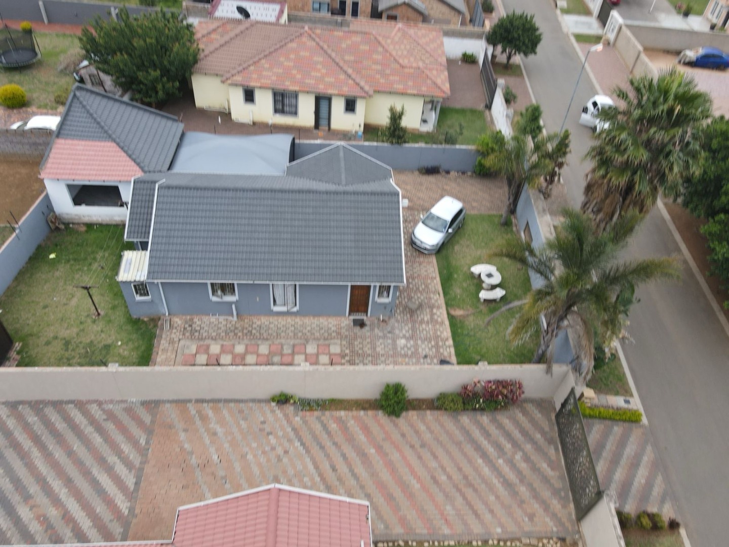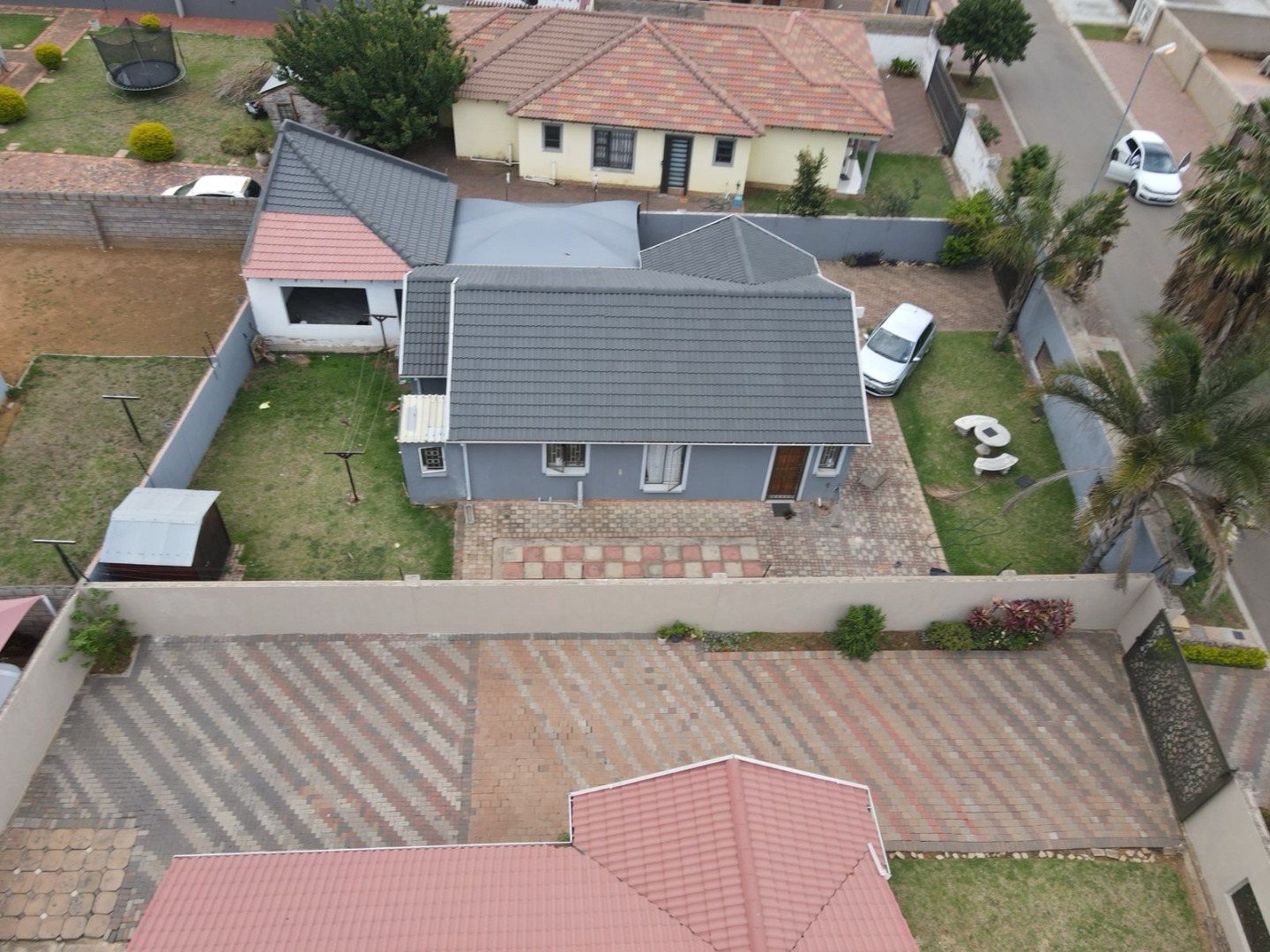 This inviting residential property in Alveda, Johannesburg, presents a modern aesthetic with a neat grey exterior and a dark grey tiled roof, ensuring strong kerb appeal. Spanning a comfortable 75.00 sqm, the home features a practical layout designed for contemporary living. It comprises three well-proportioned bedrooms and two bathrooms, including a private en-suite for added convenience. The interior also includes a dedicated lounge area and a functional kitchen, catering to daily needs. The property is thoughtfully designed to be wheelchair friendly, enhancing accessibility for all. Situated on a generous 456.00 sqm erf, the outdoor spaces are both private and highly functional. The property boasts extensive paved areas, providing ample parking with two dedicated garages and an impressive eight additional parking spaces, many of which are covered by shade structures. High perimeter walls, complemented by electric fencing, ensure enhanced security and privacy. The well-maintained lawns and a practical wendy house add to the utility of the garden, creating a pleasant outdoor environment where pets are also welcome. Security is further bolstered by burglar bars, a security gate, and 24-hour security within the estate, offering peace of mind. Modern connectivity is readily available with fibre internet access. Located in the established Alveda suburb of Johannesburg, this property offers the advantages of estate living within a vibrant South African urban setting. Key Features: * 3 Bedrooms, 2 Bathrooms (1 En-suite) * 1 Lounge, 1 Kitchen * 2 Garages, 8 Parking Spaces * Erf Size: 456.00 sqm, Floor Size: 75.00 sqm * Modern Grey Exterior & Tiled Roof * Electric Fencing, Burglar Bars, Security Gate * Fibre Internet Ready * Wheelchair Friendly * Pets Allowed