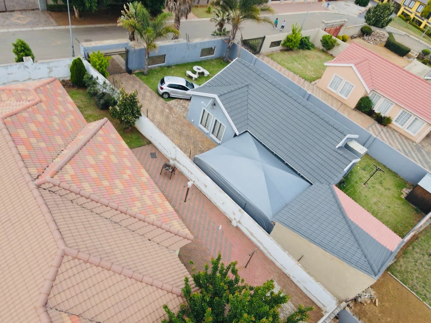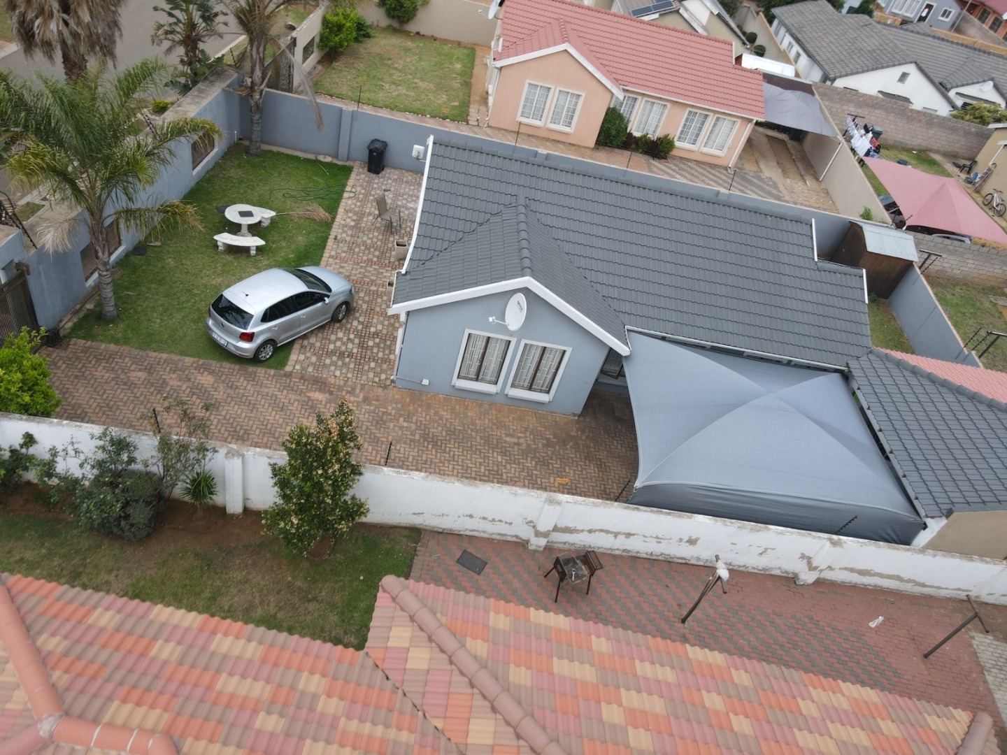 This inviting residential property in Alveda, Johannesburg, presents a modern aesthetic with a neat grey exterior and a dark grey tiled roof, ensuring strong kerb appeal. Spanning a comfortable 75.00 sqm, the home features a practical layout designed for contemporary living. It comprises three well-proportioned bedrooms and two bathrooms, including a private en-suite for added convenience. The interior also includes a dedicated lounge area and a functional kitchen, catering to daily needs. The property is thoughtfully designed to be wheelchair friendly, enhancing accessibility for all. Situated on a generous 456.00 sqm erf, the outdoor spaces are both private and highly functional. The property boasts extensive paved areas, providing ample parking with two dedicated garages and an impressive eight additional parking spaces, many of which are covered by shade structures. High perimeter walls, complemented by electric fencing, ensure enhanced security and privacy. The well-maintained lawns and a practical wendy house add to the utility of the garden, creating a pleasant outdoor environment where pets are also welcome. Security is further bolstered by burglar bars, a security gate, and 24-hour security within the estate, offering peace of mind. Modern connectivity is readily available with fibre internet access. Located in the established Alveda suburb of Johannesburg, this property offers the advantages of estate living within a vibrant South African urban setting. Key Features: * 3 Bedrooms, 2 Bathrooms (1 En-suite) * 1 Lounge, 1 Kitchen * 2 Garages, 8 Parking Spaces * Erf Size: 456.00 sqm, Floor Size: 75.00 sqm * Modern Grey Exterior & Tiled Roof * Electric Fencing, Burglar Bars, Security Gate * Fibre Internet Ready * Wheelchair Friendly * Pets Allowed