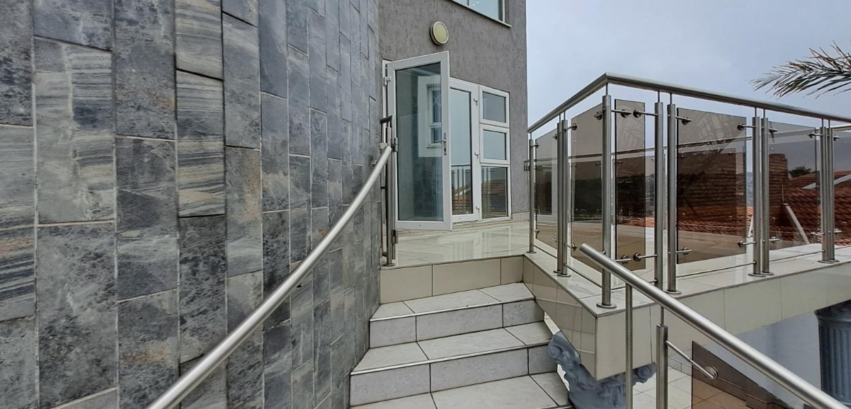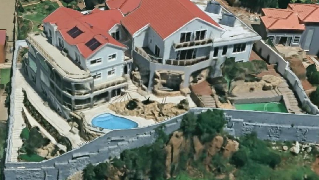The exterior grounds are equally impressive, providing a private oasis for relaxation and recreation. A sparkling swimming pool invites leisurely afternoons, while dedicated staff quarters ensure seamless household management. With four secure garages and an additional three parking spaces, vehicular accommodation is ample. The property also welcomes pets, integrating seamlessly into a family-oriented lifestyle.