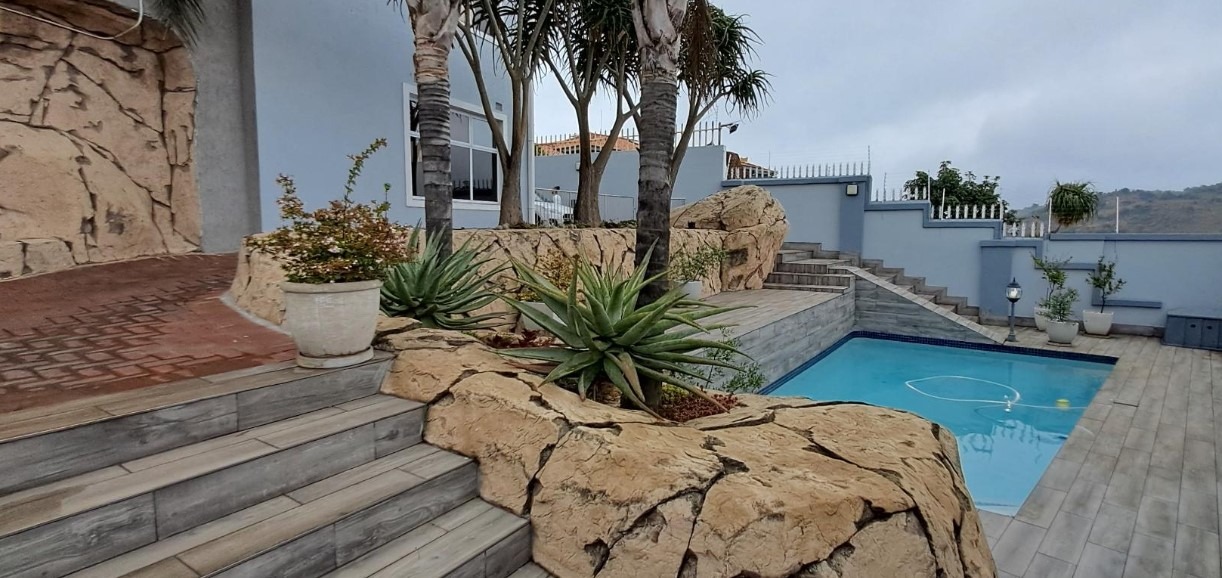 The exterior grounds are equally impressive, providing a private oasis for relaxation and recreation. A sparkling swimming pool invites leisurely afternoons, while dedicated staff quarters ensure seamless household management. With four secure garages and an additional three parking spaces, vehicular accommodation is ample. The property also welcomes pets, integrating seamlessly into a family-oriented lifestyle.