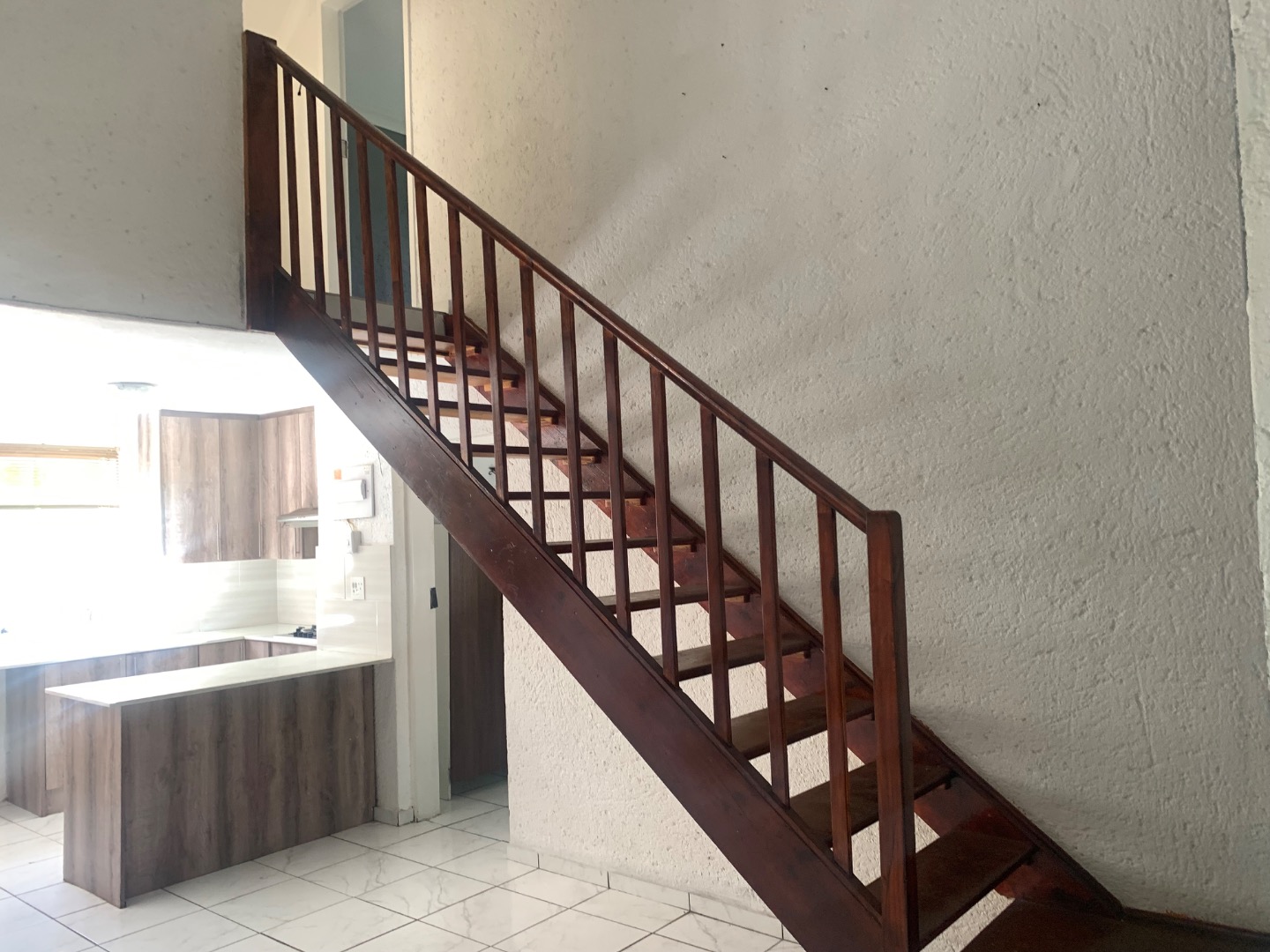 Step into this inviting 2-bedroom home, where modern comfort meets relaxed living. The heart of the home features a contemporary kitchen, complete with sleek wood-look cabinetry, clean white countertops, and a built-in hob – perfect for everyday cooking. Tiled flooring flows effortlessly through the dedicated dining area and a cozy lounge, creating an open and welcoming atmosphere for entertaining or simply unwinding. A solid wooden staircase adds a touch of warmth and character, connecting the living spaces with ease. Upstairs, you'll find two comfortable bedrooms, each thoughtfully designed with built-in wardrobes and matching dresser units, providing ample storage. Natural light fills these spaces, making them bright and airy. The home offers two modern bathrooms; one boasts a stylish walk-in shower with a glass partition, a rainfall showerhead, and chic grey marble-look tiles for a spa-like experience. The second bathroom also features a walk-in shower with a glass screen, complemented by light grey tiles and a black accent strip, ensuring convenience and contemporary design. Outside, enjoy your own private patio, ideal for morning coffee or an evening braai. The property includes a lovely garden and a refreshing pool, offering a fantastic spot to relax and cool off on sunny days. This home is nestled within a well-maintained residential complex, providing peace of mind with gated access and a friendly community vibe. Bassonia, a charming suburb in Johannesburg, South Africa, offers convenient access to local amenities and a great lifestyle. Key Features: * 2 Bedrooms, 2 Bathrooms * Modern kitchen with wood-look cabinets * Stylish walk-in showers * Private garden and refreshing pool * Inviting patio for outdoor living * Secure, gated complex environment * Tiled flooring throughout * Convenient Johannesburg location