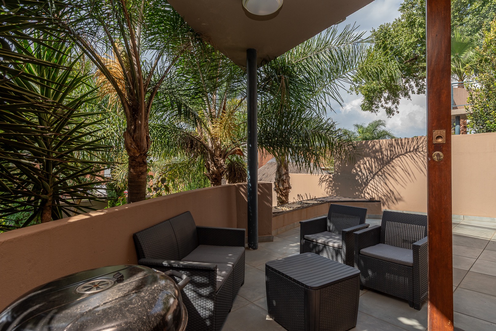 Domestic quarters with a bathroom and shower add further convenience, while the garden provides exclusive access to the complex pool, making this unit truly one of a kind.
