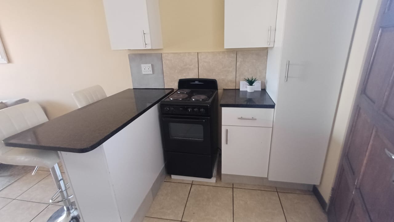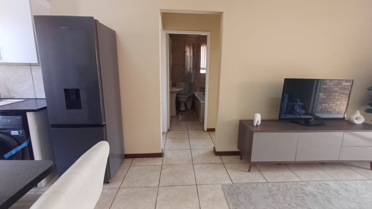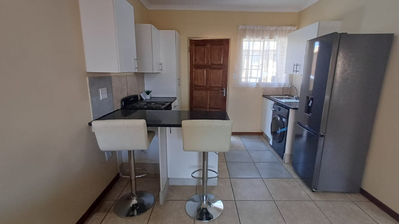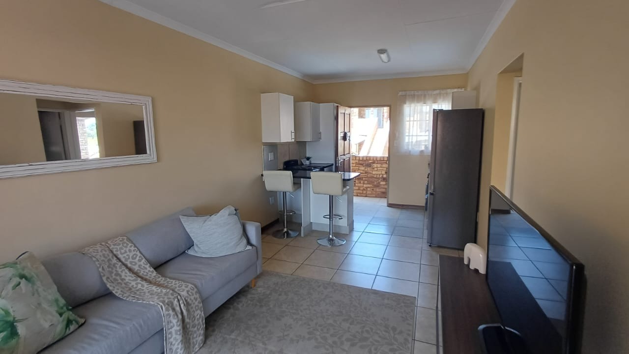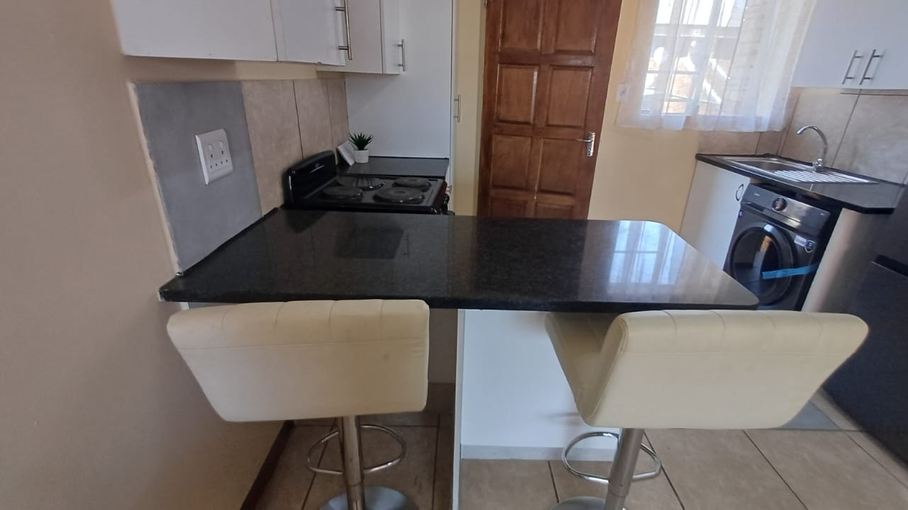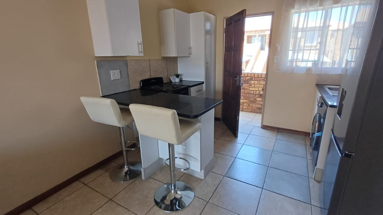 Discover this functional 2-bedroom, 1-bathroom unit located within a secure estate in Elands Rock Estate, Elandspark, Johannesburg. The property features a compact, open-plan living area with a modern kitchen, complete with white cabinetry, dark countertops, and a breakfast bar, including a stove, all set on practical tiled flooring with neutral decor. NB: NO TRANSFER COSTS.