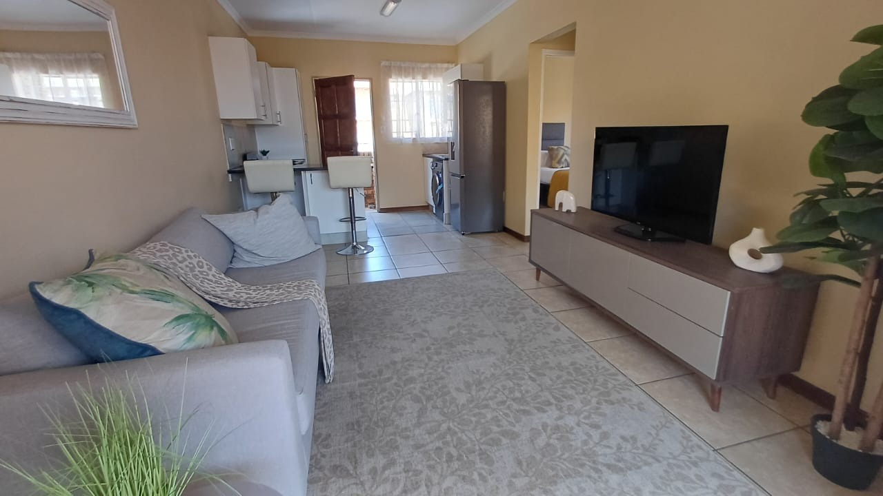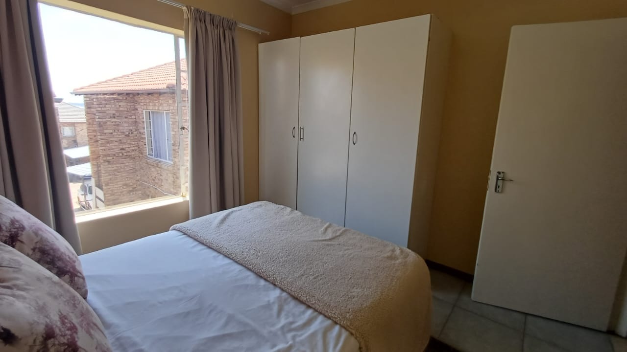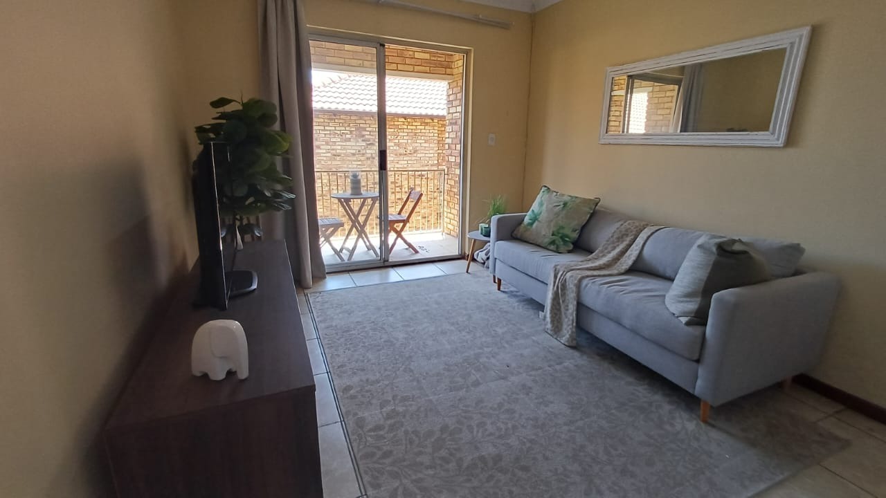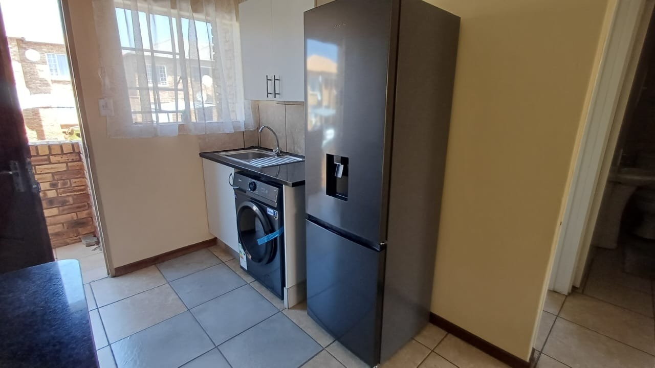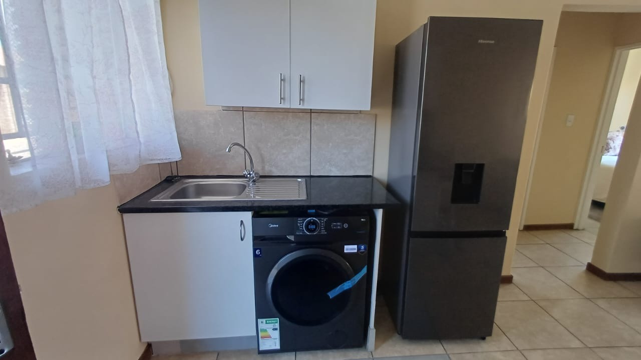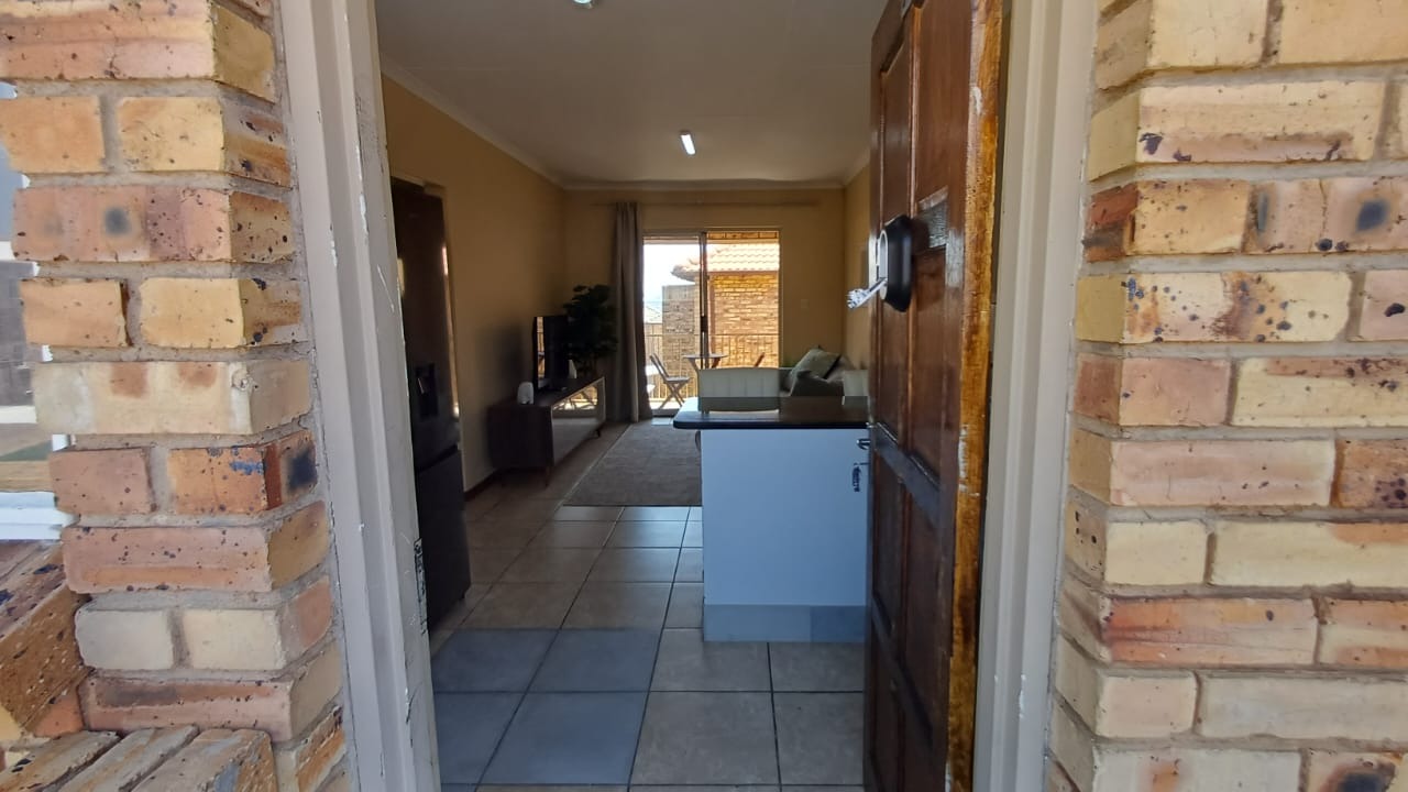 Discover this functional 2-bedroom, 1-bathroom unit located within a secure estate in Elands Rock Estate, Elandspark, Johannesburg. The property features a compact, open-plan living area with a modern kitchen, complete with white cabinetry, dark countertops, and a breakfast bar, including a stove, all set on practical tiled flooring with neutral decor. NB: NO TRANSFER COSTS.