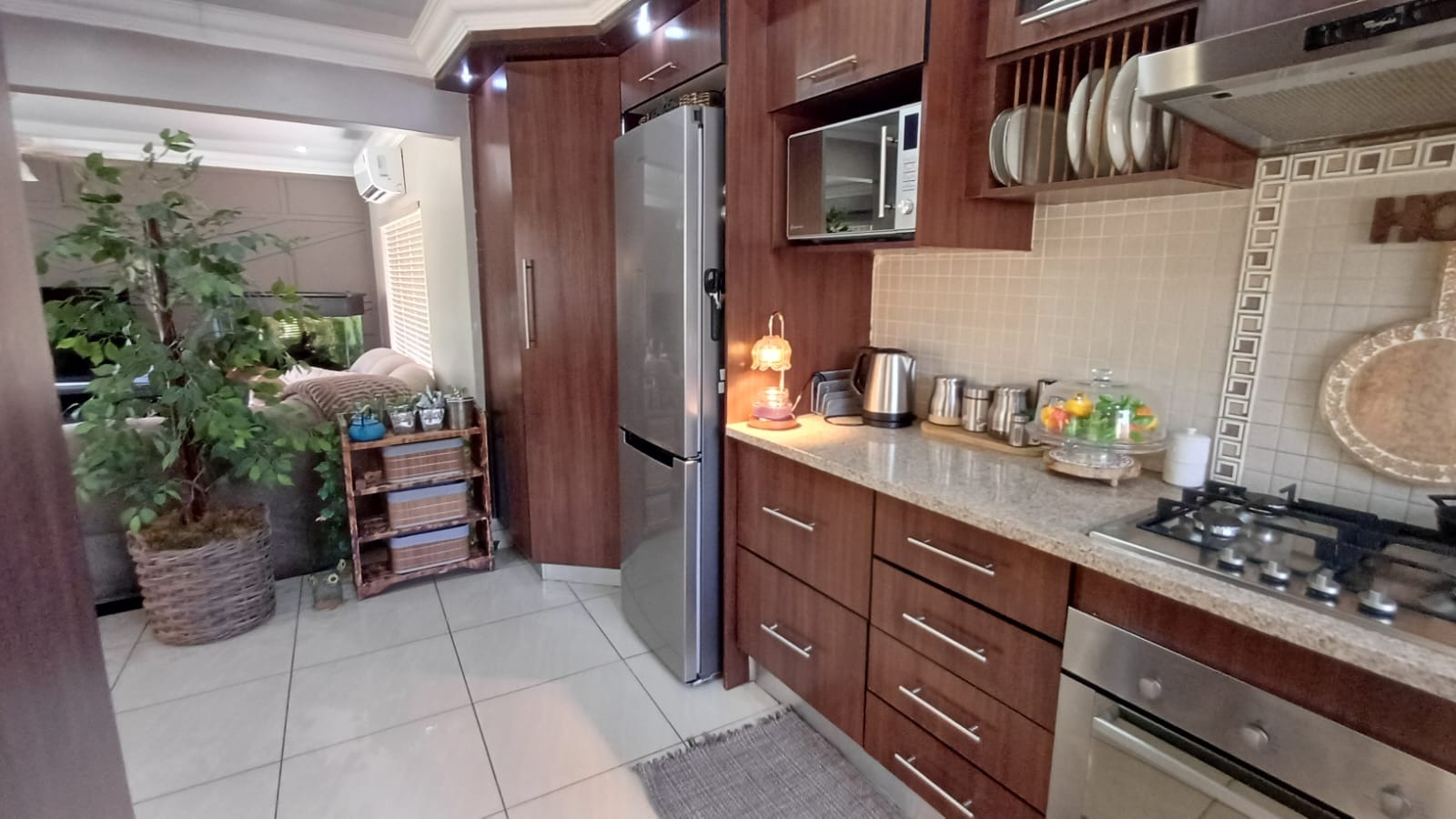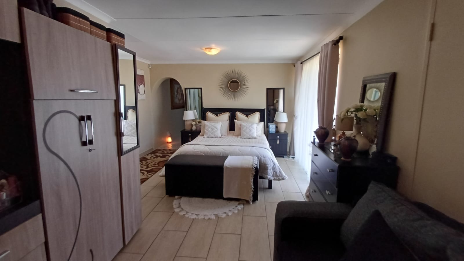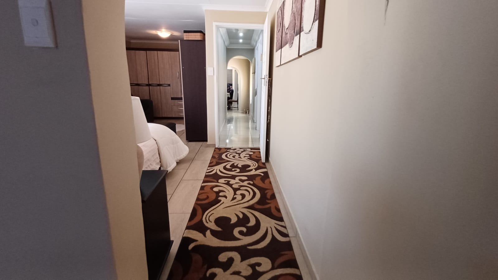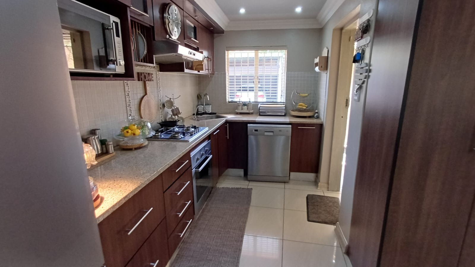 Step into this lovely home in Elandspark, Johannesburg, where comfort meets convenience. The heart of the home is a well-equipped kitchen, boasting modern stainless steel appliances like a gas hob, oven, microwave, and dishwasher, all complemented by dark wood cabinetry, granite countertops, and a tiled backsplash. It’s an open-plan space that flows effortlessly into the living area, perfect for entertaining or just relaxing. The living room itself is a cozy spot with a stylish geometric accent wall, a large, comfortable sectional sofa, and a sliding glass door that opens up to the outdoors, letting in plenty of natural light. You'll also find a charming dining area with an exposed brick archway and another large window, creating a warm atmosphere for meals. This home offers two comfortable bedrooms and three bathrooms, including two ensuites and a handy guest toilet, ensuring everyone has their own space. Need a quiet spot to work? There's a dedicated home office or study with a glass desk and ample natural light. The entire house features easy-to-maintain tiled flooring throughout. Outside, you’ll appreciate the private garden, paving, and a secure fence, making it a great space for pets, which are welcome here! Parking is a breeze with a double garage and additional space for four more vehicles. For your peace of mind, the property is fitted with burglar bars and a security gate. Located in the metropolitan and suburban area of Elandspark, Johannesburg, this home offers a fantastic blend of city access and a relaxed neighborhood vibe. Key Features: * 2 Bedrooms, 3 Bathrooms (2 en-suite) * Modern kitchen with stainless steel appliances * Open-plan living and dining areas * Dedicated home office/study * Double garage + 4 additional parking spaces * Private garden and patio access * Security features: burglar bars, security gate, fence * Tiled flooring throughout * Pets allowed