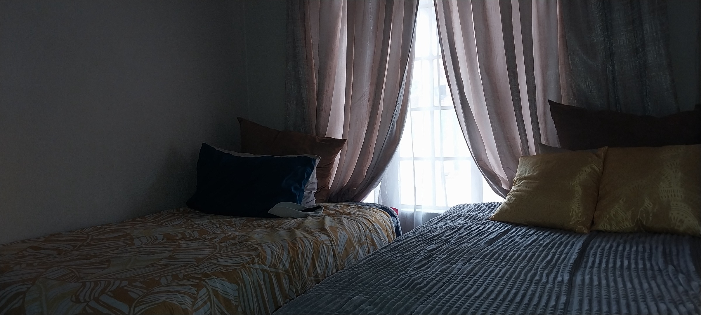 Laminated bedroom flooring. Rest of the unit fully tiled.