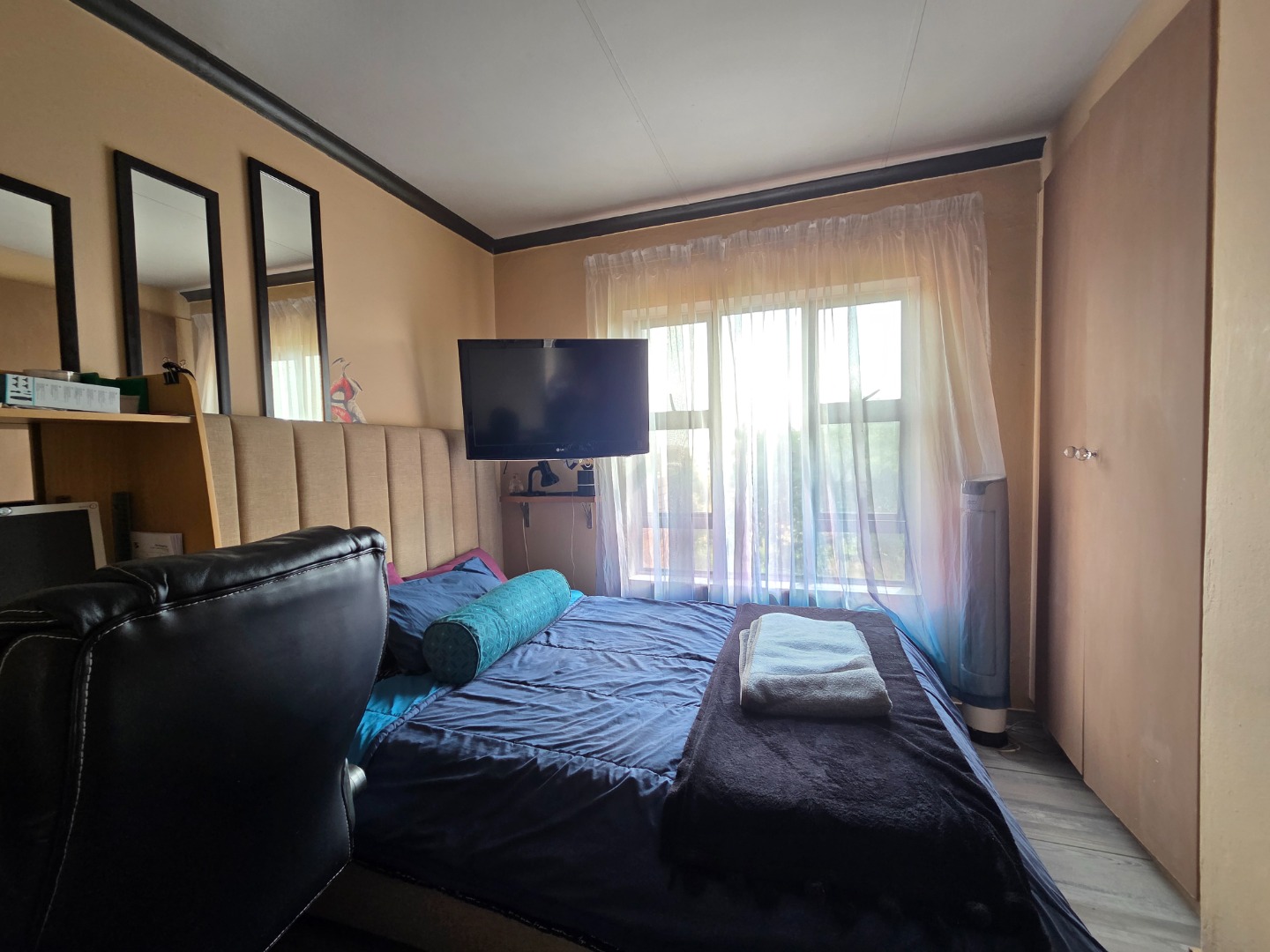 This charming 3-bedroom townhouse in Elandsfontein offers comfortable and modern living. All three bedrooms are fitted with built-in cupboards, while the unit features two well-appointed bathrooms.