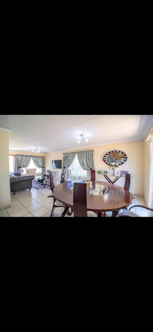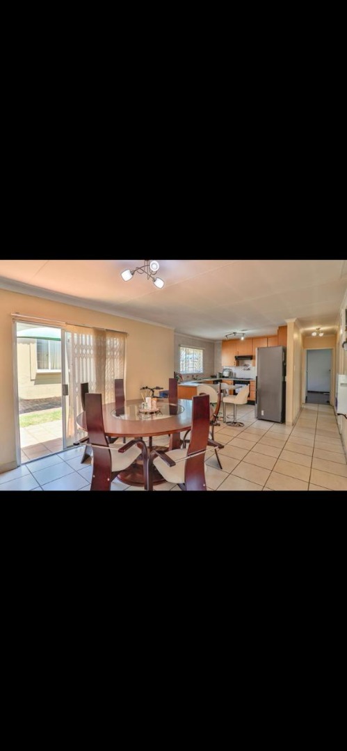This inviting 3-bedroom, 2-bathroom residence is ideally situated in the established suburban area of Elandspark, Johannesburg. Designed for comfortable living, the home features an appealing open-plan layout that seamlessly connects the living and dining areas. Abundant natural light streams through large windows and sliding doors, enhancing the spacious feel of the tiled interiors. The main lounge provides a welcoming space for relaxation, while the two designated dining areas offer flexibility for both formal meals and casual family gatherings. The heart of this home is its functional kitchen, boasting an L-shaped design with ample light wood cabinetry and practical granite-look countertops. It comes equipped with a built-in oven and hob, catering to everyday culinary needs. A convenient breakfast bar provides an additional spot for quick meals or social interaction, making the kitchen a central hub for the household. Tiled flooring and walls ensure easy maintenance throughout this well-appointed space. The property offers three comfortable bedrooms, providing ample accommodation for a family. These are complemented by two well-maintained bathrooms, ensuring convenience and privacy for all residents. The practical layout prioritises ease of living, making it suitable for various lifestyles. Outside, the property includes two dedicated parking spaces, addressing practical needs for vehicle accommodation. Security is a notable feature, with visible security bars on windows and doors, as well as security gates on sliding doors, offering peace of mind for residents. Elandspark is a well-regarded suburban neighbourhood in Johannesburg, known for its community atmosphere and convenient access to local amenities and transport routes. This home presents an excellent opportunity for those seeking a practical and secure living environment within a vibrant South African city. Key Features: * 3 Bedrooms * 2 Bathrooms * Open-plan Living & Dining * Functional Kitchen with Breakfast Bar * Built-in Oven & Hob * Tiled Flooring Throughout * Good Natural Light * 2 Parking Spaces * Security Bars & Gates