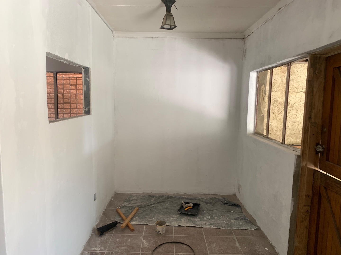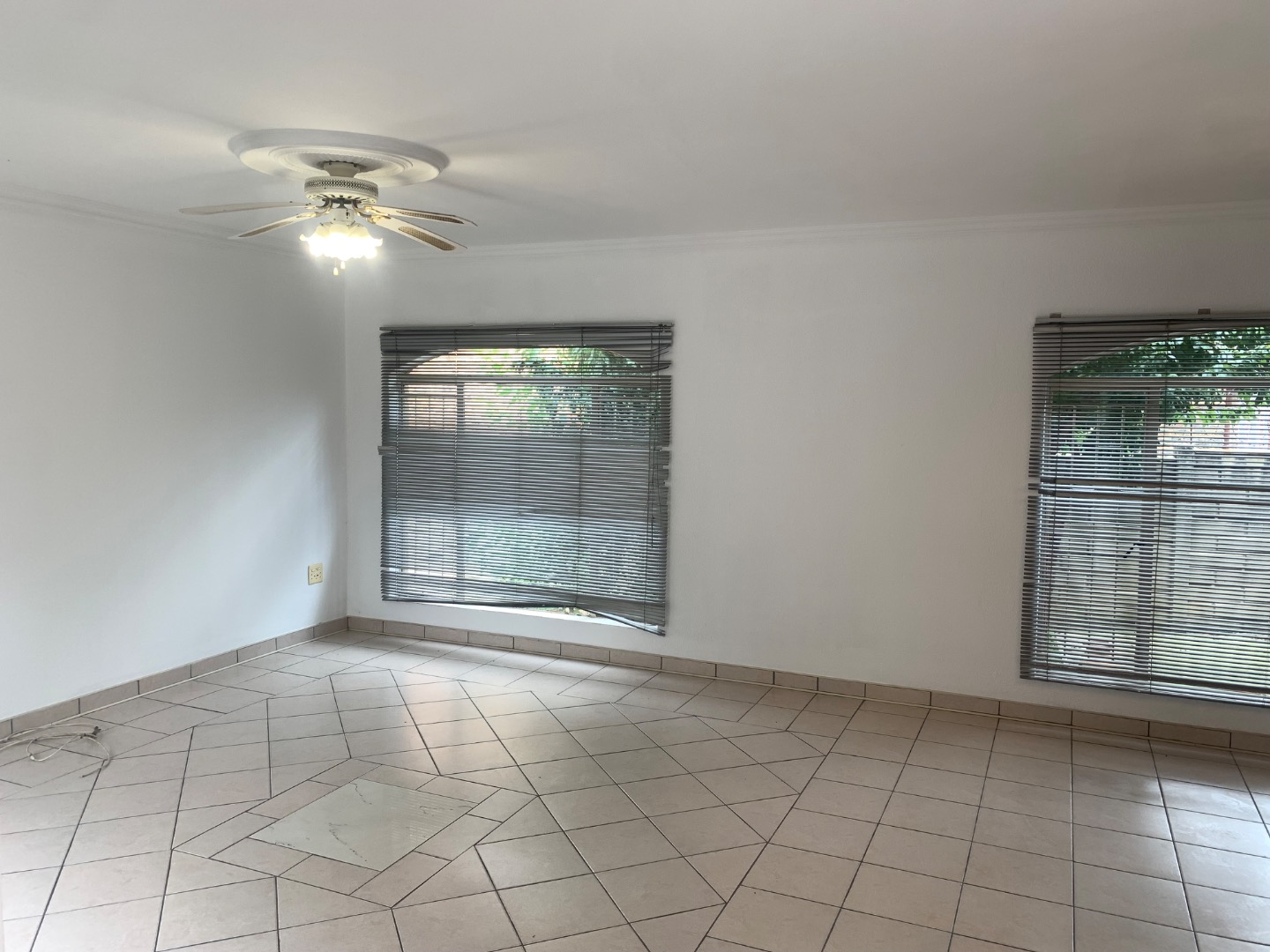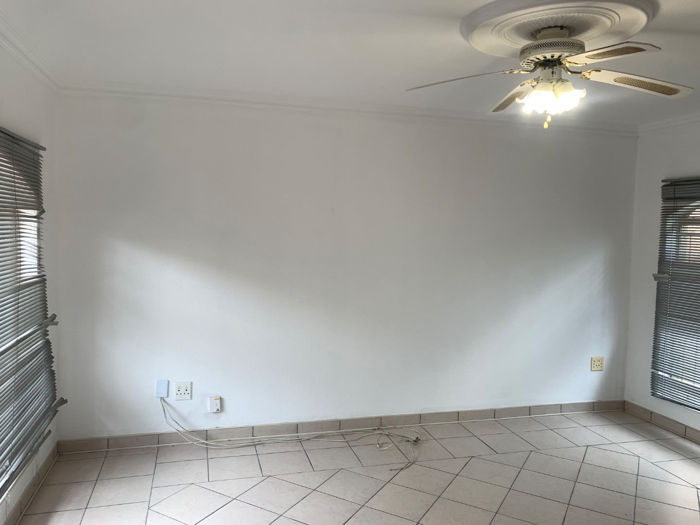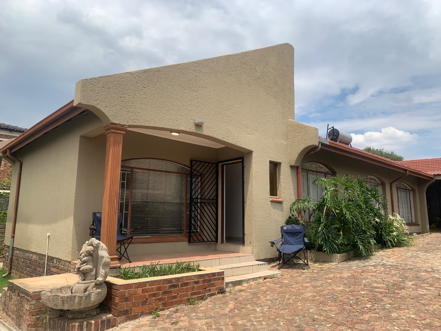 Discover this inviting single-story home located in the established suburb of Elandspark, Johannesburg. The property presents a welcoming facade with a light-colored, textured stucco exterior and a distinctive red-tiled roof. A covered front entrance, complete with a decorative column and security gate, enhances both aesthetics and safety. The extensive paved front yard and driveway offer ample parking, leading to a covered carport for two vehicles. Energy efficiency is a key feature, with a visible solar water heater installed on the roof, contributing to lower utility costs. Security is further bolstered by window bars on the arched windows and a secure perimeter wall with a gate. Step inside to find a well-appointed interior spanning 218.00 sqm, featuring three comfortable bedrooms and two bathrooms. The living spaces include a dedicated lounge and a dining room, providing ample area for relaxation and entertaining. A functional kitchen awaits your personal touch. Throughout the home, freshly painted white walls and durable light-colored tiled flooring create a bright and clean ambiance. Each room benefits from natural light through windows, complemented by ceiling fans with integrated lights and decorative crown molding, adding a touch of classic detail. Situated on a generous 616.00 sqm erf, the property offers practical outdoor living. The extensive paving ensures low maintenance, while a garden area provides potential for landscaping and outdoor enjoyment. This home is ideal for those seeking a blend of comfort, security, and convenience in a residential setting. Elandspark is a residential area within Johannesburg, South Africa, known for its community atmosphere and accessibility to local amenities. It offers a suburban lifestyle with convenient connections to the wider city. Key Features: * 3 Bedrooms, 2 Bathrooms * 1 Lounge, 1 Dining Room, 1 Kitchen * 2 Garages (covered carport) * 616 sqm Erf, 218 sqm Floor Size * Solar Water Heater * Paved Driveway & Garden * Security Gate & Window Bars * Tiled Flooring & White Walls