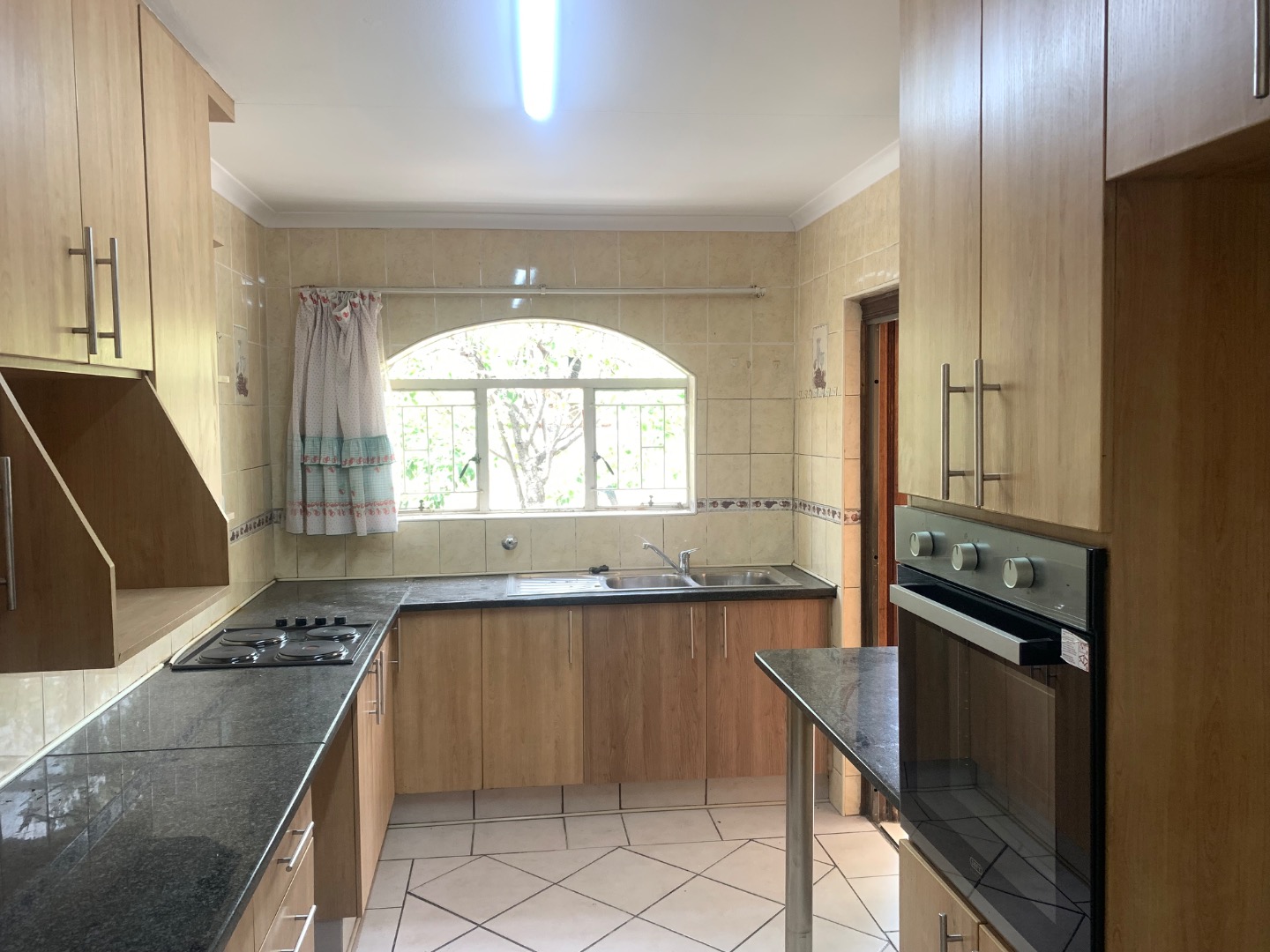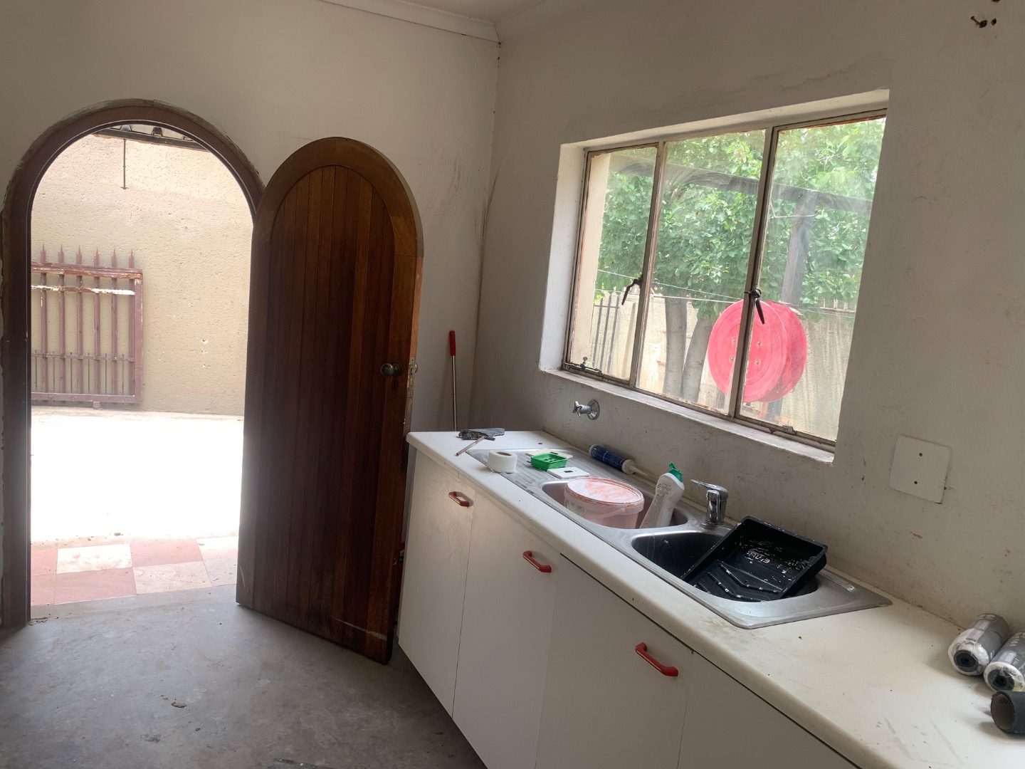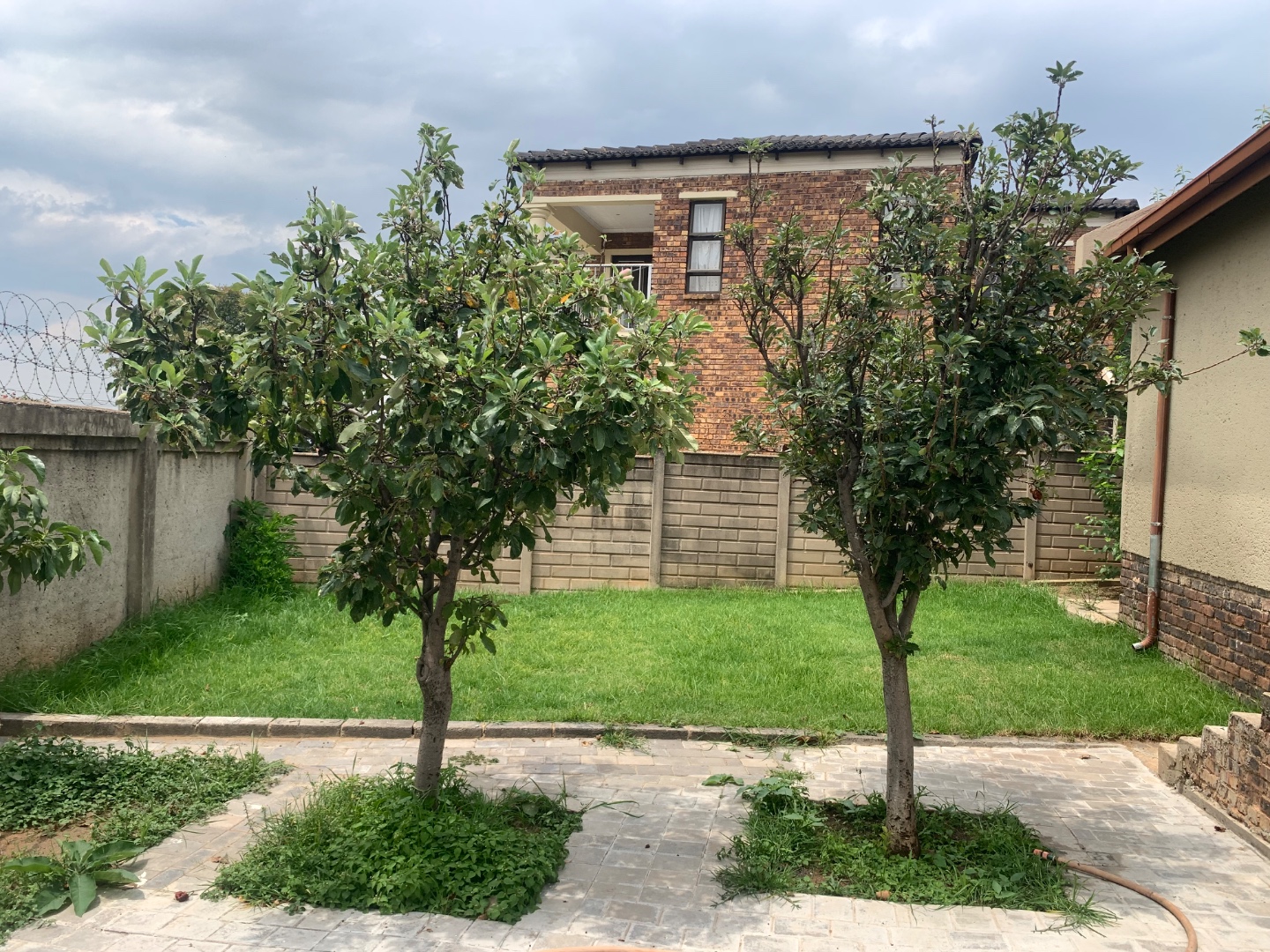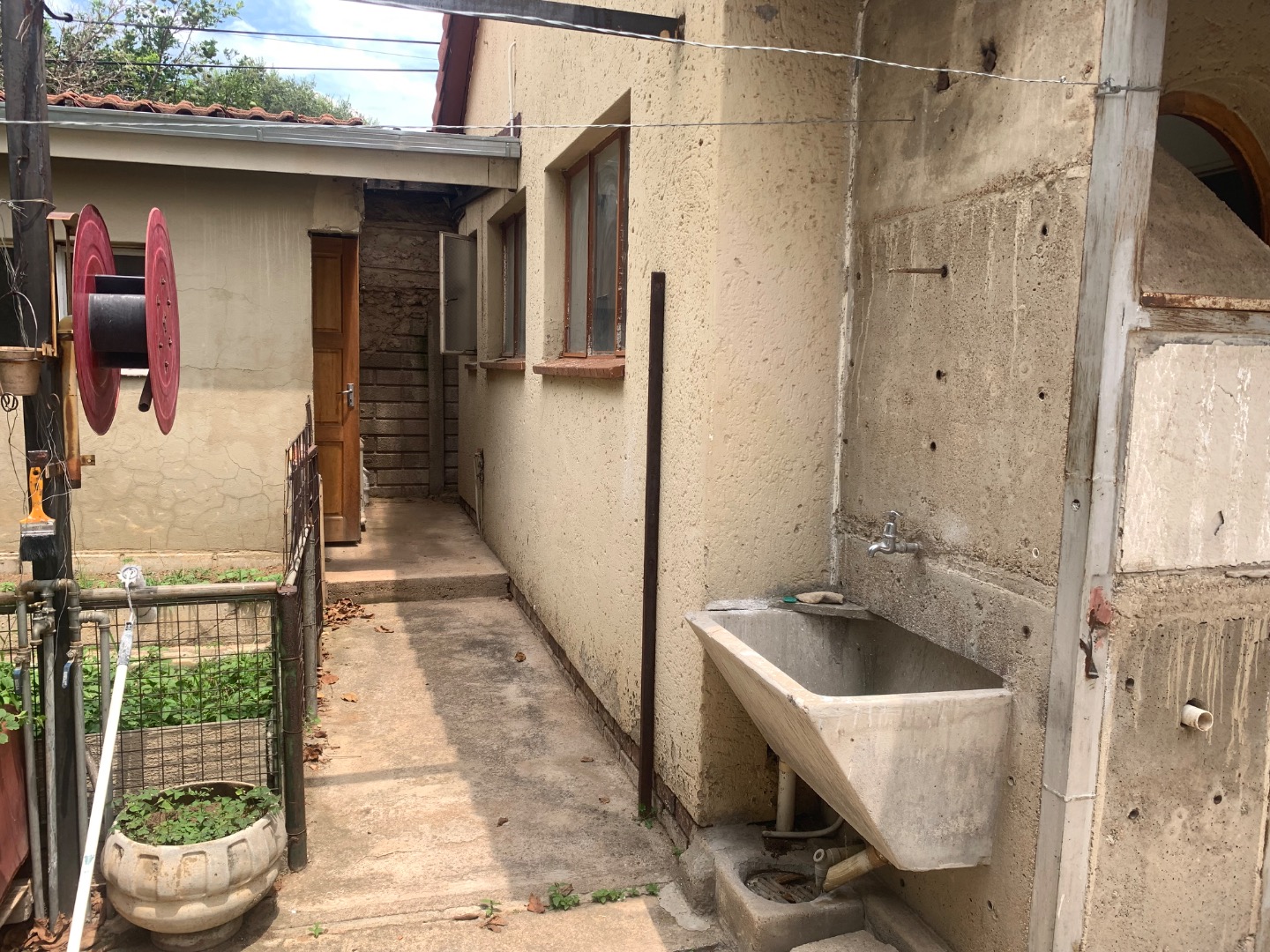 Discover this inviting single-story home located in the established suburb of Elandspark, Johannesburg. The property presents a welcoming facade with a light-colored, textured stucco exterior and a distinctive red-tiled roof. A covered front entrance, complete with a decorative column and security gate, enhances both aesthetics and safety. The extensive paved front yard and driveway offer ample parking, leading to a covered carport for two vehicles. Energy efficiency is a key feature, with a visible solar water heater installed on the roof, contributing to lower utility costs. Security is further bolstered by window bars on the arched windows and a secure perimeter wall with a gate. Step inside to find a well-appointed interior spanning 218.00 sqm, featuring three comfortable bedrooms and two bathrooms. The living spaces include a dedicated lounge and a dining room, providing ample area for relaxation and entertaining. A functional kitchen awaits your personal touch. Throughout the home, freshly painted white walls and durable light-colored tiled flooring create a bright and clean ambiance. Each room benefits from natural light through windows, complemented by ceiling fans with integrated lights and decorative crown molding, adding a touch of classic detail. Situated on a generous 616.00 sqm erf, the property offers practical outdoor living. The extensive paving ensures low maintenance, while a garden area provides potential for landscaping and outdoor enjoyment. This home is ideal for those seeking a blend of comfort, security, and convenience in a residential setting. Elandspark is a residential area within Johannesburg, South Africa, known for its community atmosphere and accessibility to local amenities. It offers a suburban lifestyle with convenient connections to the wider city. Key Features: * 3 Bedrooms, 2 Bathrooms * 1 Lounge, 1 Dining Room, 1 Kitchen * 2 Garages (covered carport) * 616 sqm Erf, 218 sqm Floor Size * Solar Water Heater * Paved Driveway & Garden * Security Gate & Window Bars * Tiled Flooring & White Walls