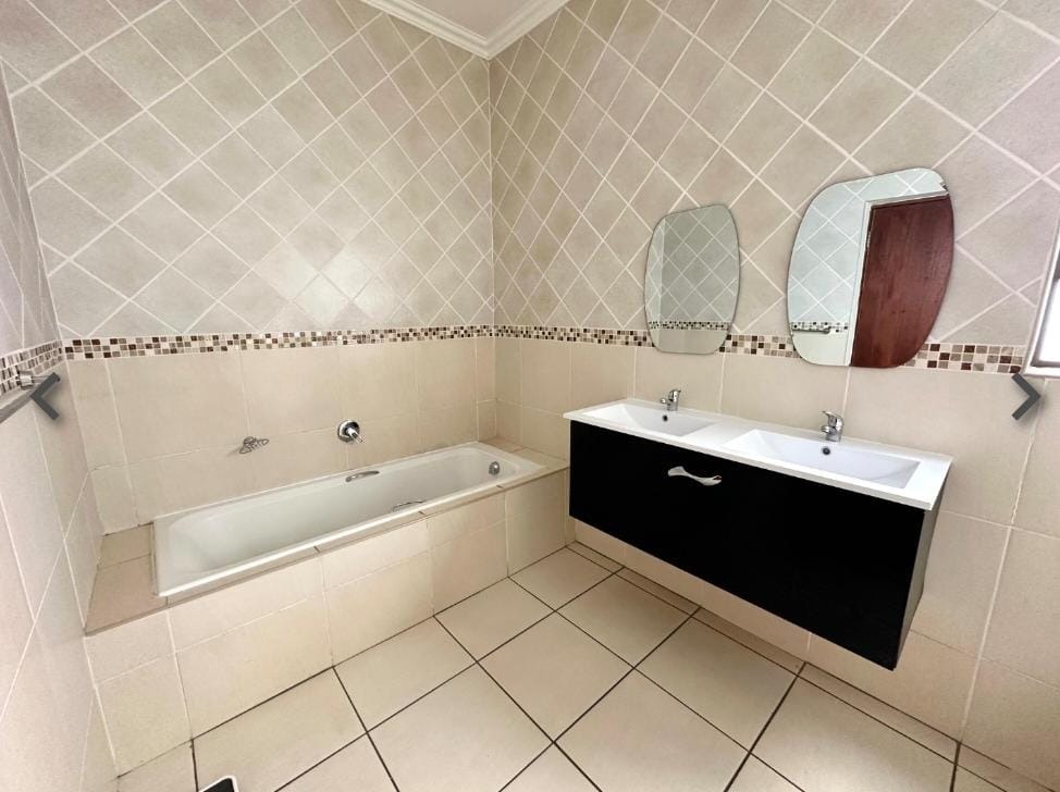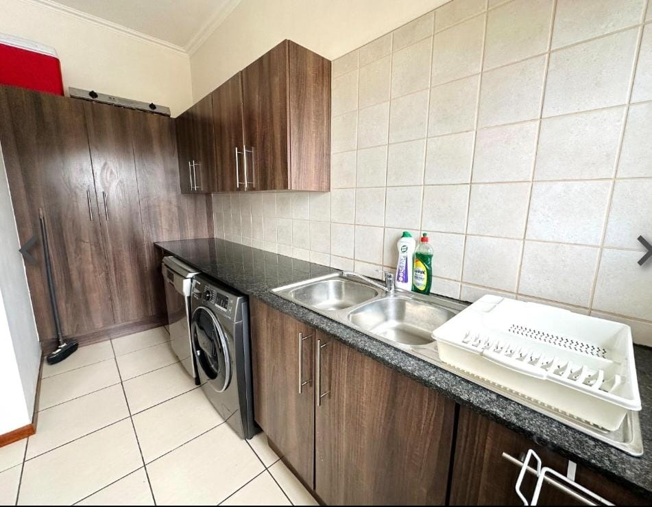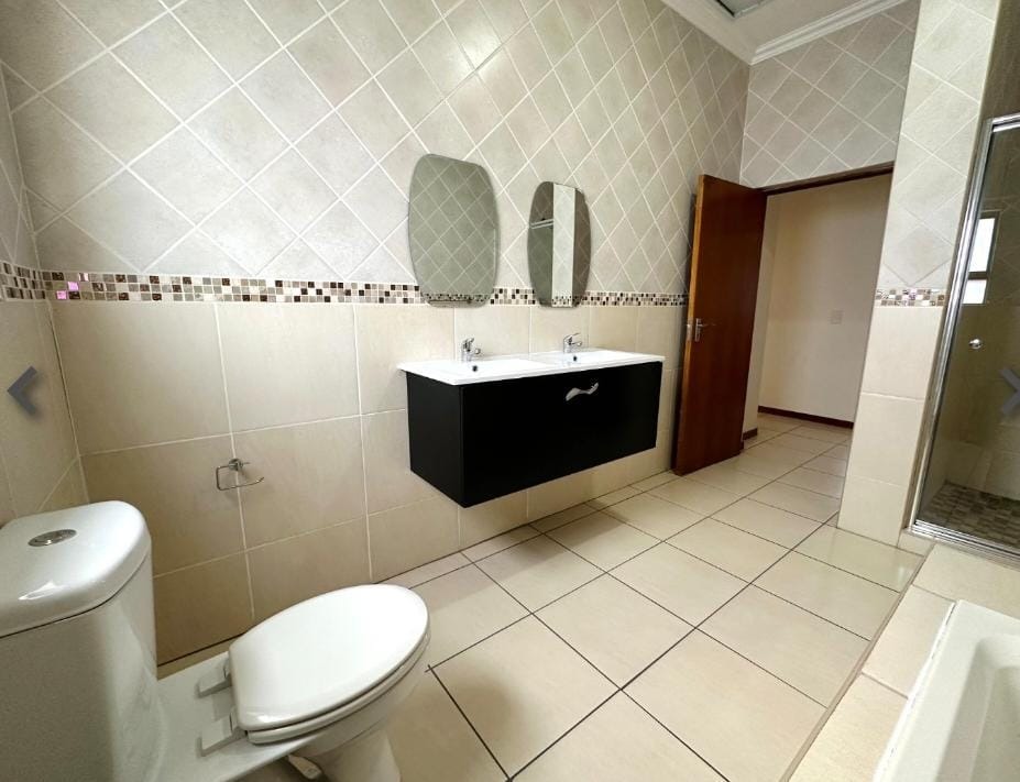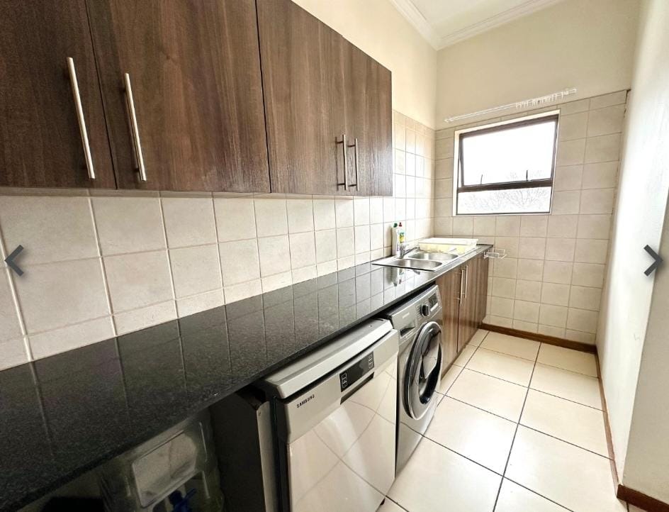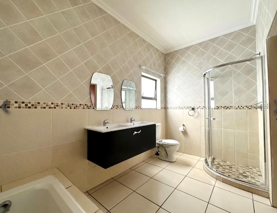 Discover modern living in this inviting 3-bedroom, 2-bathroom residence located within a desirable complex in Elandspark, Johannesburg. This home offers a harmonious blend of style and functionality, perfect for contemporary lifestyles. The heart of the home is its open-plan living area, seamlessly connecting a spacious lounge, dining room, and a sleek, modern kitchen. The kitchen is a culinary delight, featuring dark wood cabinetry, elegant granite countertops, a functional island that doubles as a breakfast bar, and integrated stainless steel appliances including an oven and extractor fan. Tiled flooring extends throughout, ensuring easy maintenance and a cohesive aesthetic. Each of the three bedrooms is designed for comfort, boasting ample natural light from large windows and durable tiled flooring. The master bedroom benefits from a private en-suite bathroom, offering a tranquil retreat. The two well-appointed bathrooms are a highlight, featuring modern fixtures, double vanities with contemporary sinks, and a combination of built-in bathtubs and separate glass-enclosed showers, all fully tiled for a clean and sophisticated finish. Built-in wardrobes provide practical storage solutions. This property includes one dedicated parking space, adding to the convenience of complex living. Elandspark is a well-established residential area in Johannesburg, offering a convenient location for daily amenities and transport links. Key Features: * 3 Spacious Bedrooms * 2 Modern Bathrooms (1 En-suite) * Open-Plan Living & Dining * Sleek Kitchen with Granite & Island * Stainless Steel Appliances * Tiled Flooring Throughout * Double Vanities in Bathrooms * Separate Shower & Bathtub Options * Dedicated Parking Space * Complex Living Environment