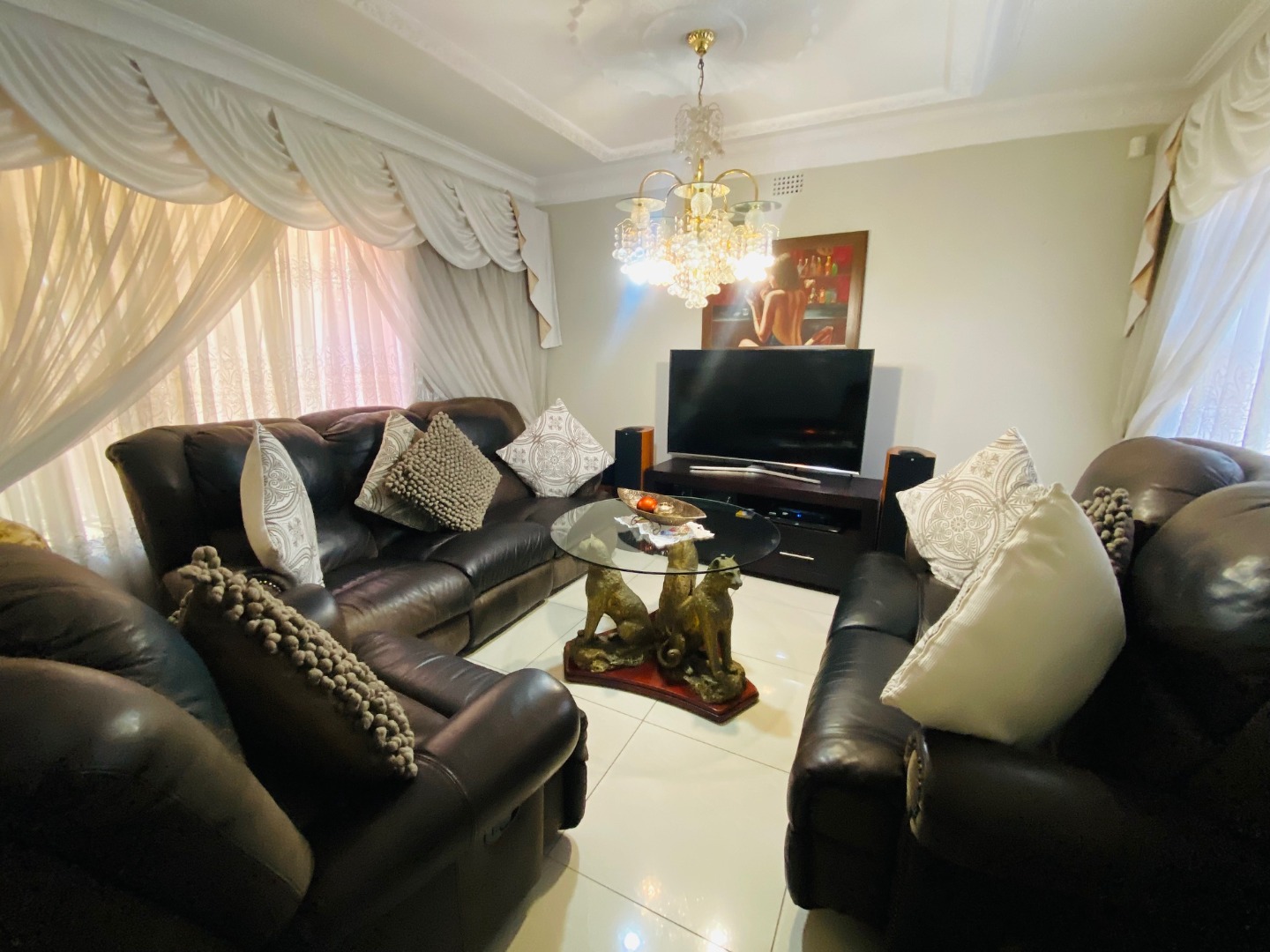 This charming suburban residence, nestled in the desirable Evans Park area of Johannesburg, South Africa, offers a generous 330 sqm of living space on an 833 sqm erf. The property presents a welcoming kerb appeal with its well-maintained garden, mature trees, and distinctive red brick pathways, hinting at the comfort within.