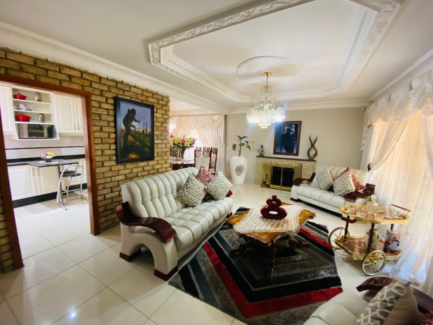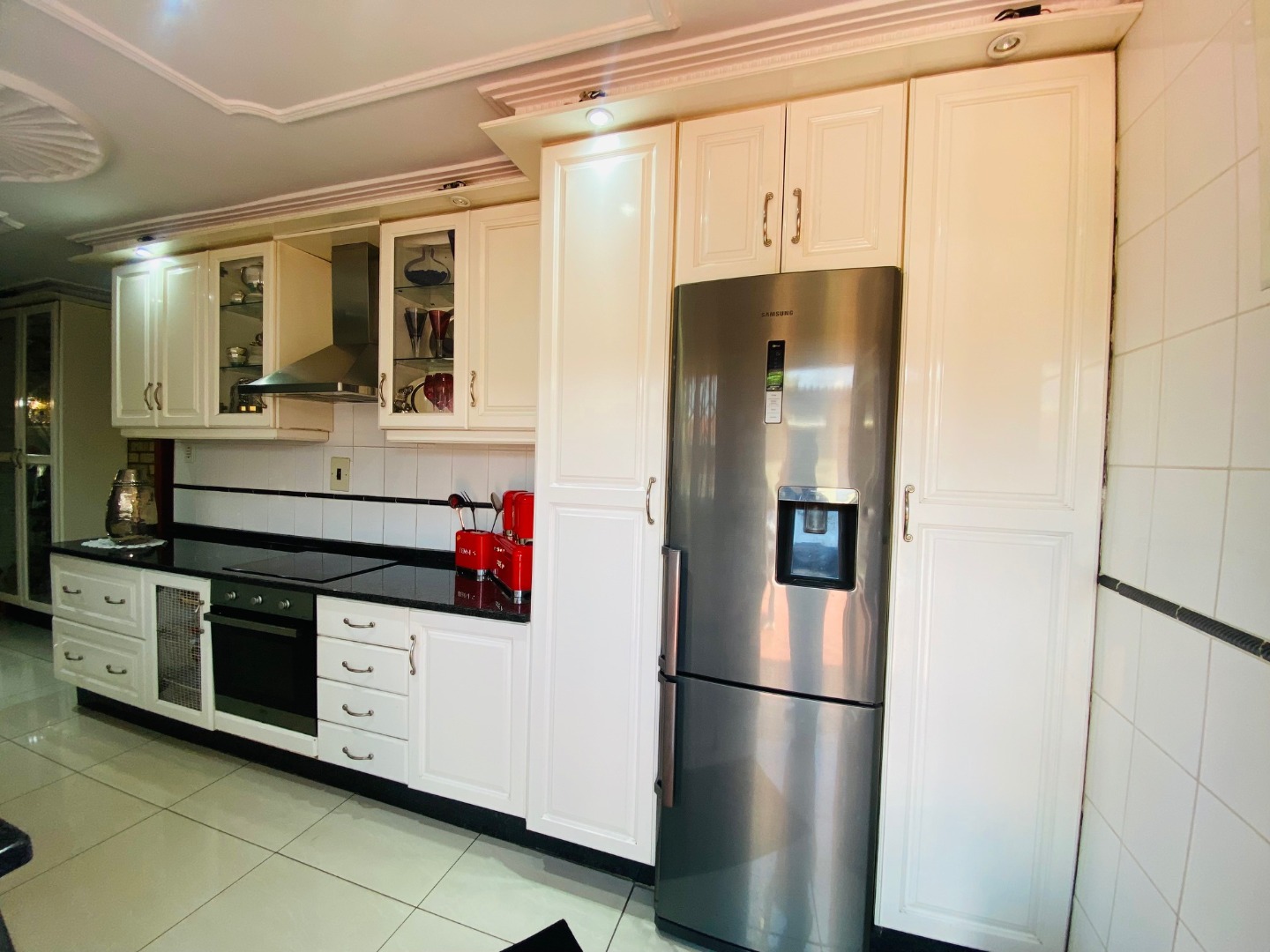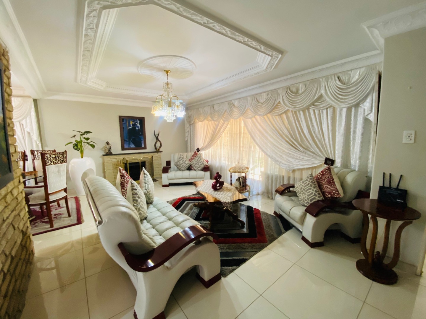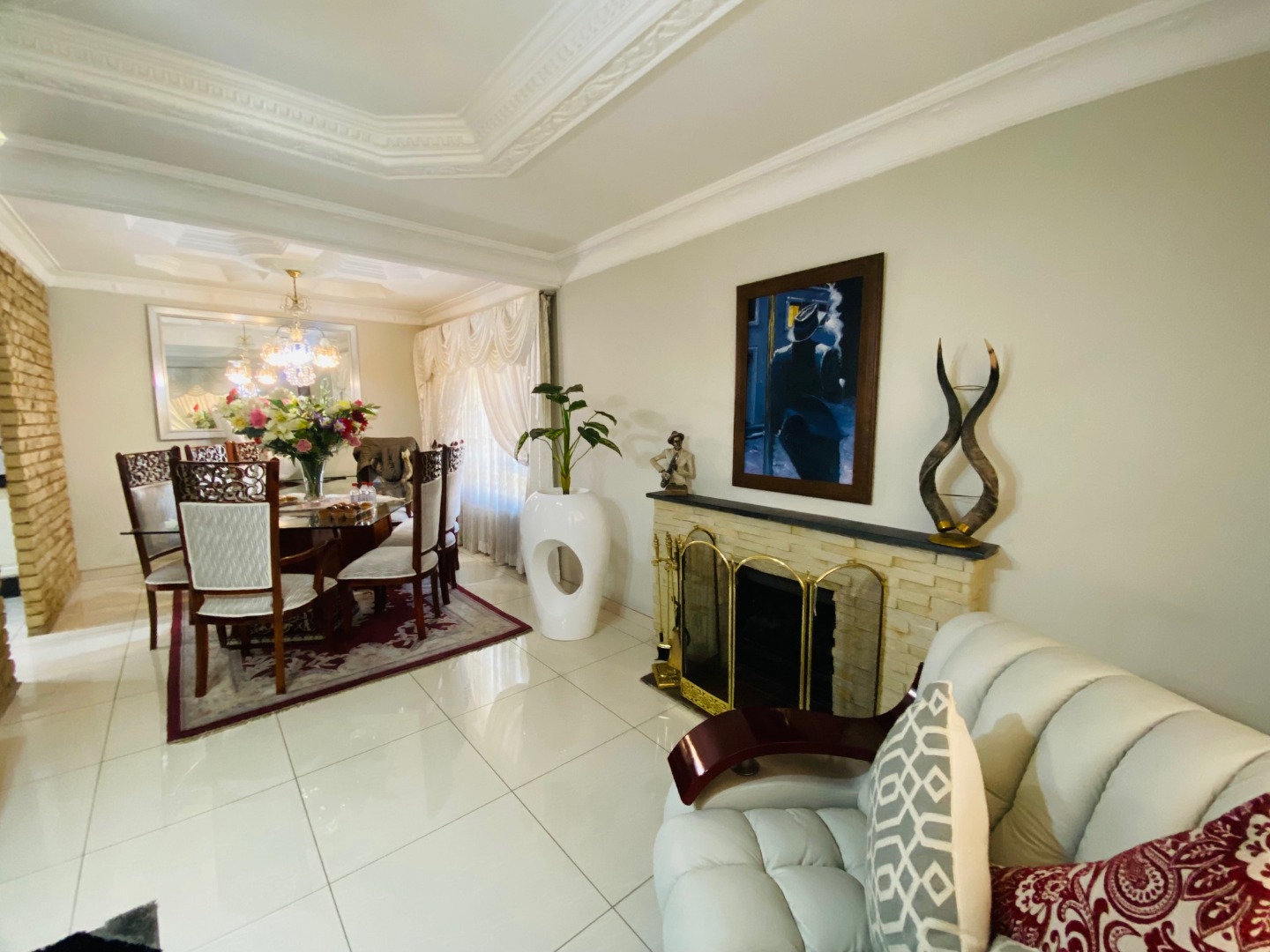 Outdoor living is a true delight with a large, private garden featuring mature trees and lush greenery, perfect for pets. Enjoy sunny days by the kidney-shaped swimming pool or entertain guests under the lapa, complete with a built-in bar. A jacuzzi adds a touch of luxury, while paving ensures easy maintenance. Security is enhanced by a perimeter fence and burglar bars, providing peace of mind.