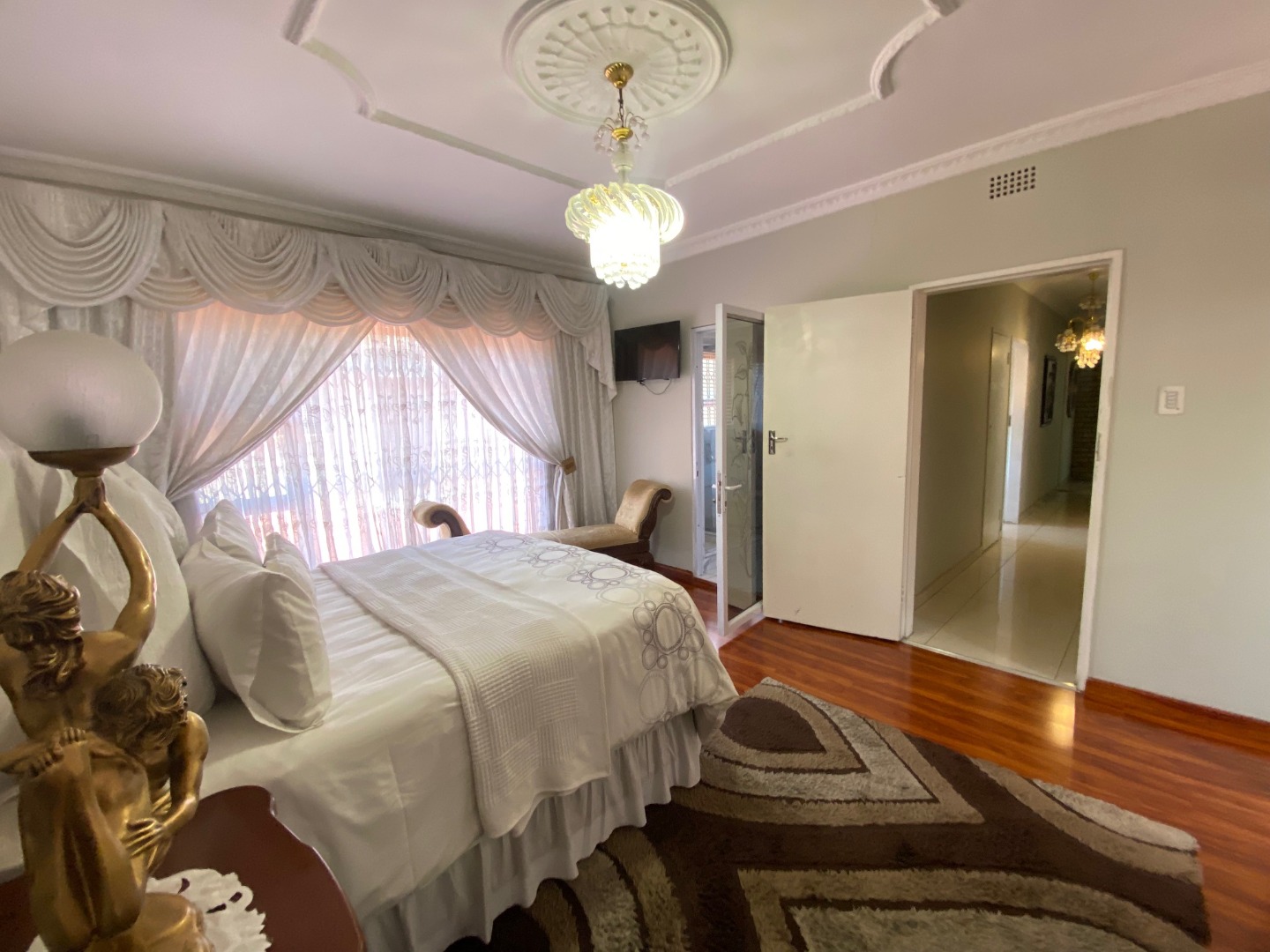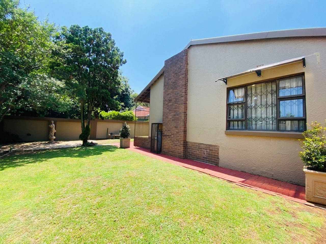 This charming suburban residence, nestled in the desirable Evans Park area of Johannesburg, South Africa, offers a generous 330 sqm of living space on an 833 sqm erf. The property presents a welcoming kerb appeal with its well-maintained garden, mature trees, and distinctive red brick pathways, hinting at the comfort within.