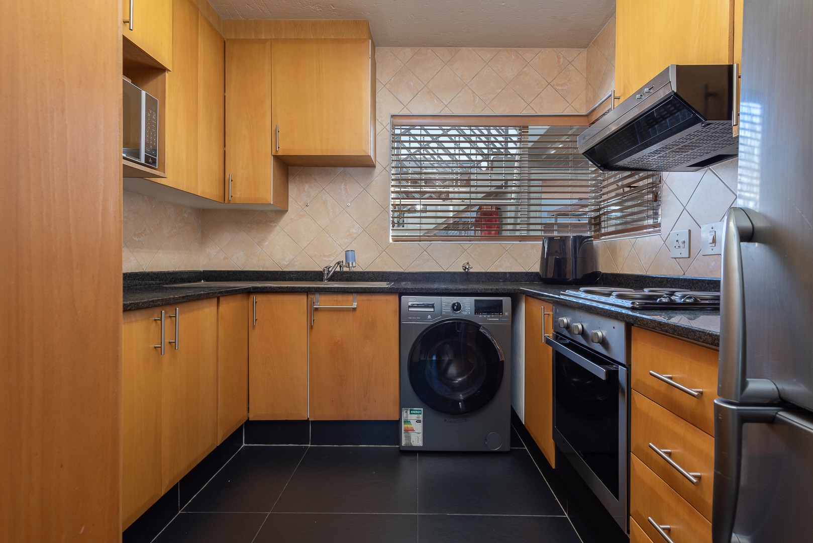 - It includes space for essential appliances such as a microwave, electric oven, electric hob, extractor fan, fridge/freezer and an integrated washer/dryer, complemented by durable tiled flooring.