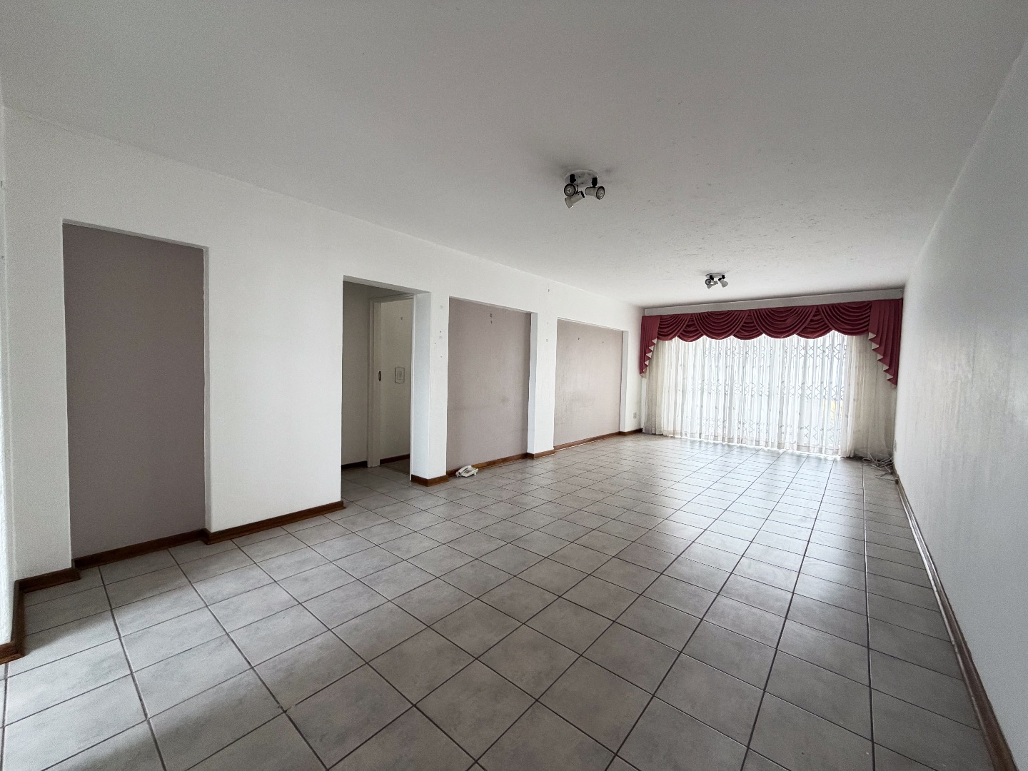Spanning 98 square metres, the interior boasts an open-plan design, facilitating a seamless flow between the lounge and dining areas. Expansive windows, fitted with security bars, invite abundant natural light, illuminating the durable tiled flooring that extends throughout the living spaces. This versatile layout provides a neutral canvas, allowing for personalised interior design and comfortable living. A private balcony offers an additional outdoor retreat.