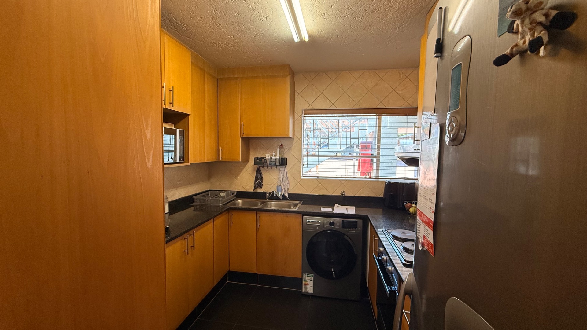 Nestled in the vibrant suburb of Glenvista, Johannesburg, this residential property offers a comfortable and secure living environment. Glenvista is known for its family-friendly atmosphere and convenient access to amenities. The interior features an inviting open-plan living and dining area, enhanced by light wood flooring and natural light streaming through large sliding glass doors. The functional L-shaped kitchen is equipped with ample wooden cabinetry, dark countertops, a double sink, and an integrated washing machine, catering to practical needs. A dedicated family TV room provides additional space for relaxation. This home comprises two well-proportioned bedrooms and two bathrooms. The compact bathrooms are fully tiled and include stand-up showers, ensuring ease of maintenance. A unique highlight is the dedicated home gym area, offering the convenience of private workouts within your own space. Step outside to a private outdoor patio, accessible via sliding glass doors, perfect for a BBQ and outdoor seating. The low-maintenance artificial turf garden provides a neat green space. The property also benefits from two dedicated parking spaces. Security is a priority within this complex, featuring electric fencing, an alarm system, an access gate, security gates, and burglar bars, providing peace of mind for residents. Key Features: * 2 Bedrooms, 2 Bathrooms * Open-plan living and dining area * Functional L-shaped kitchen * Private outdoor patio with BBQ space * Low-maintenance artificial turf garden * Dedicated home gym area * 2 Parking spaces * Enhanced security (electric fencing, alarm, access gate, security gates, burglar bars)