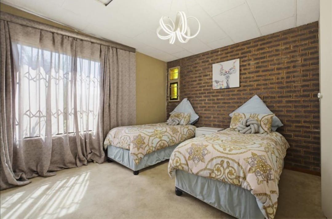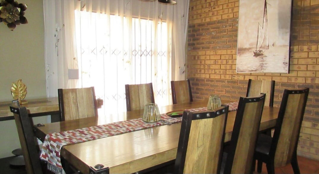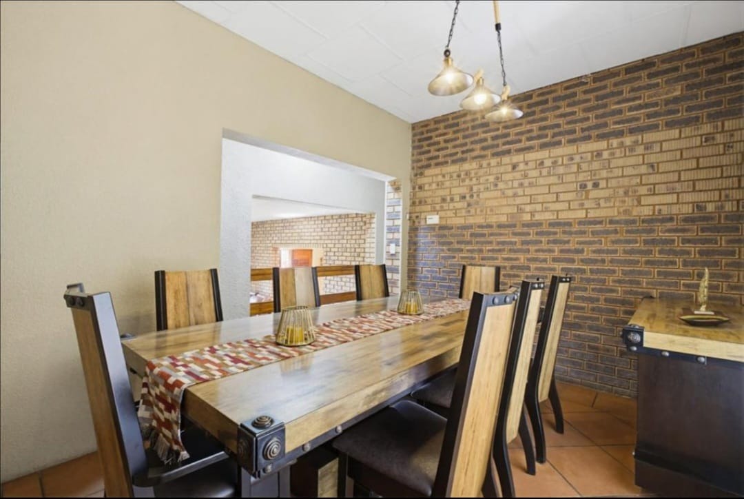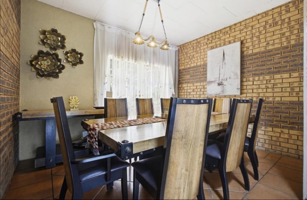 Externally, the property boasts a generous erf size of 1377 square metres, featuring a private garden and paved areas, ideal for outdoor activities and low-maintenance living. Parking is well catered for with two garages and additional off-street parking for two more vehicles. This pet-friendly residence is nestled within a tranquil suburban setting, offering a peaceful environment while remaining accessible to local amenities.