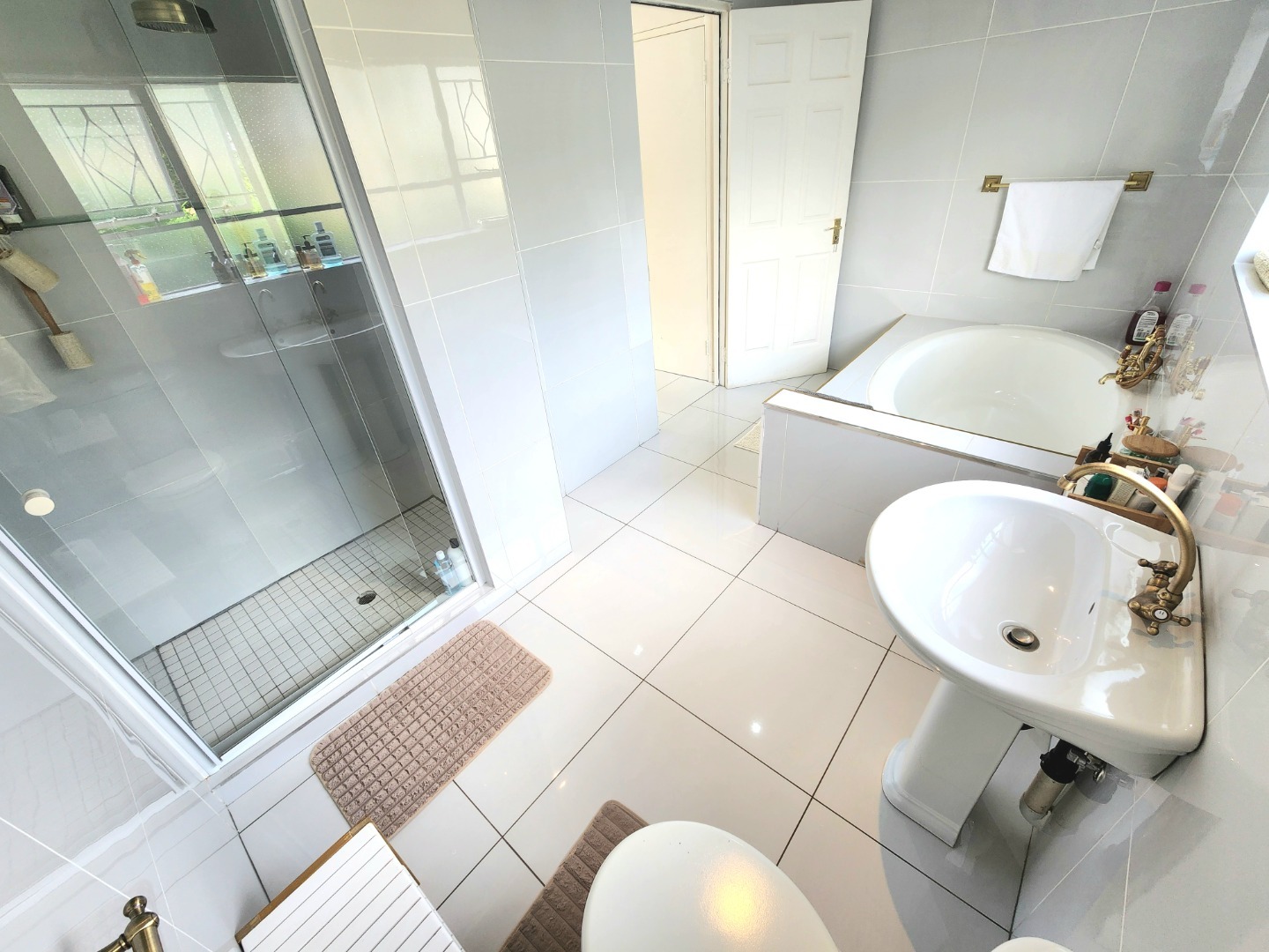 The home boasts four generously sized bedrooms, all fitted with built-in cupboards for effortless storage. The main bedroom features a private en-suite bathroom, while a second full bathroom and a separate guest toilet comfortably accommodate both family and visitors.