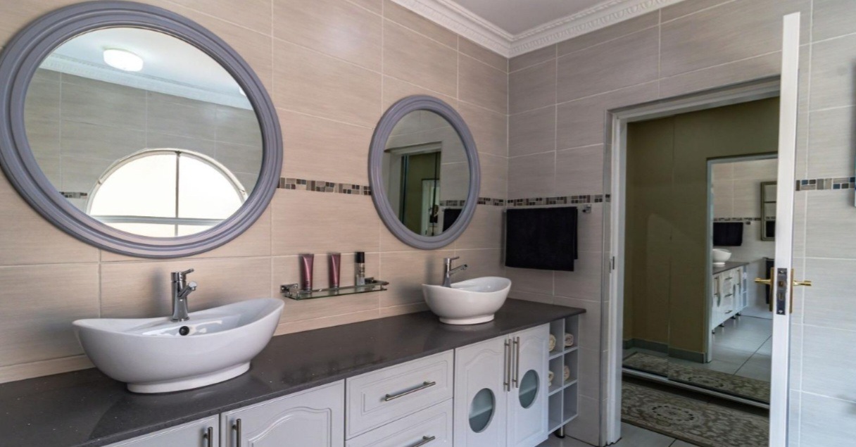 Accommodation comprises five generously proportioned bedrooms, offering private retreats for all occupants. Complementing these are four meticulously maintained bathrooms, ensuring convenience and privacy for a large family or guests. The design prioritises both comfort and practicality.