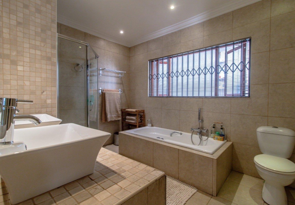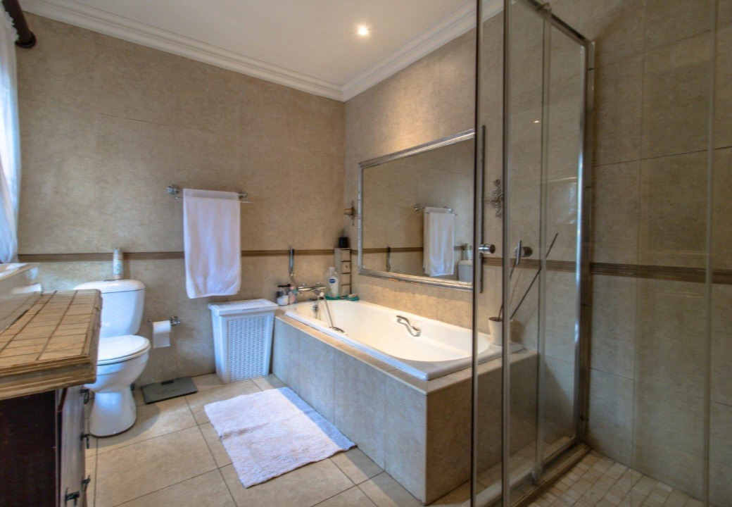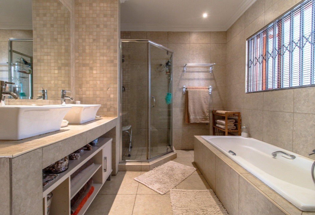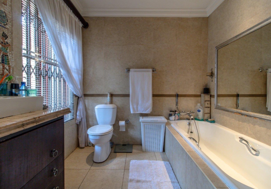 Accommodation features five generously proportioned bedrooms, each a private retreat, served by four luxurious bathrooms and a conveniently located guest toilet. Practical amenities include a dedicated laundry room, extensive storage, staff quarters, and a separate flatlet, reflecting a commitment to seamless and versatile living. Externally, a sparkling swimming pool and an inviting jacuzzi create an idyllic setting for relaxation within the expansive, verdant garden. Further practical features such as a double garage, wheelchair accessibility, and advanced solar panels with a battery inverter underscore the property's modern appeal and dedication to sustainable luxury. This Glenvista masterpiece awaits its next esteemed custodian.