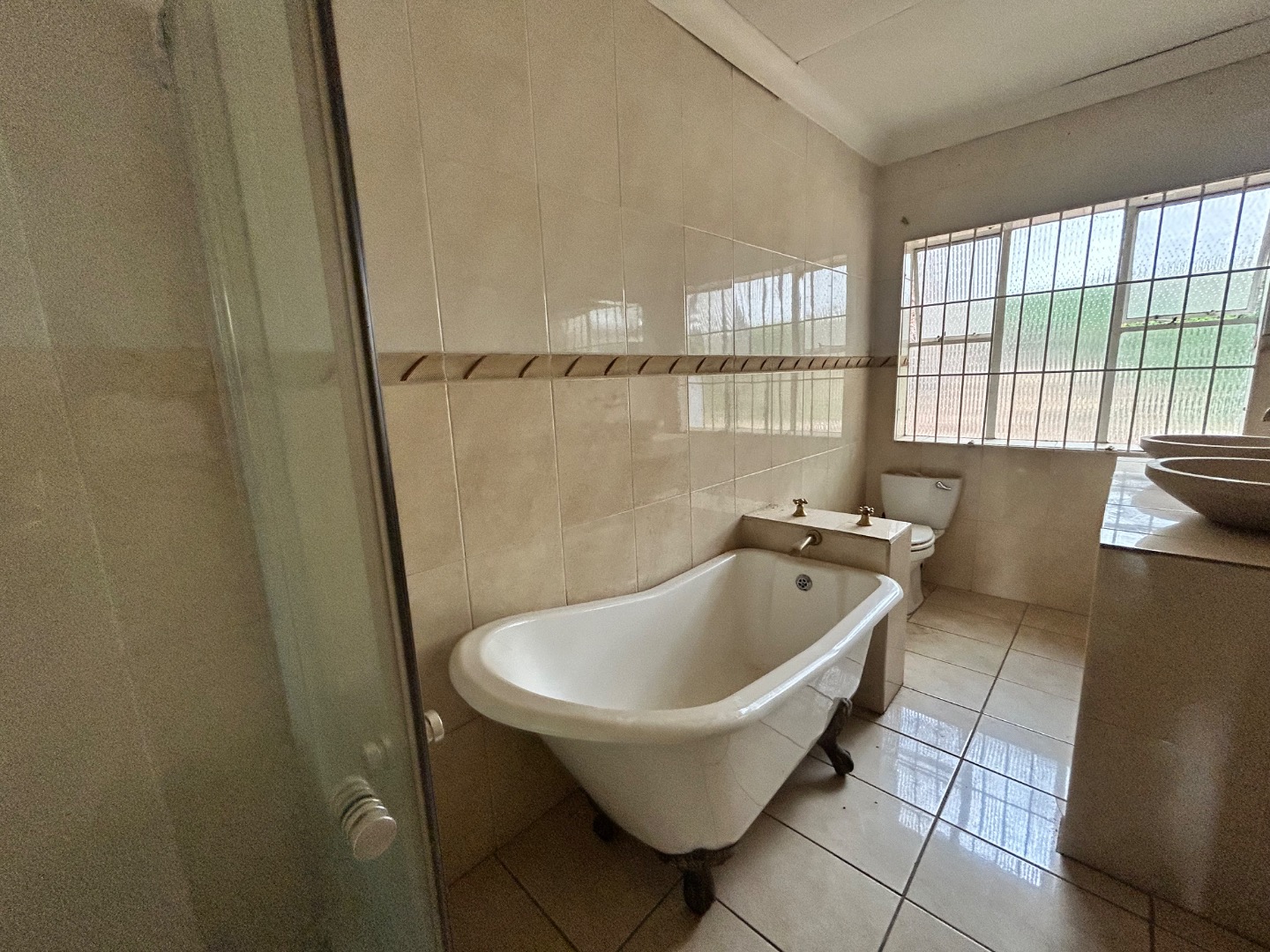 The main house boasts a spacious kitchen, dining area, and lounge, designed for comfort and functionality. It offers four bedrooms, a fully tiled full bathroom with shower, bathtub, basin, and toilet, plus guest toilets for added convenience.