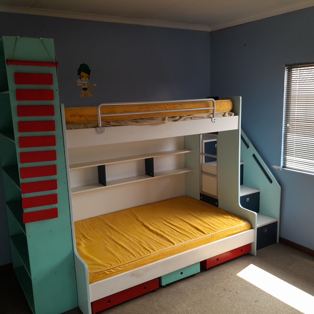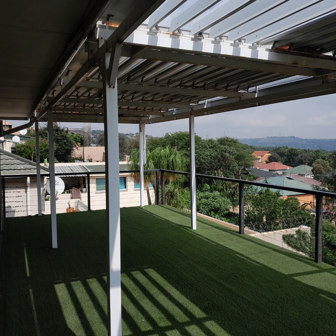 The second level has 4 bedrooms (BIC), 2 bathrooms (MES) and large balcony with fold away roof with views facing north and east rand.