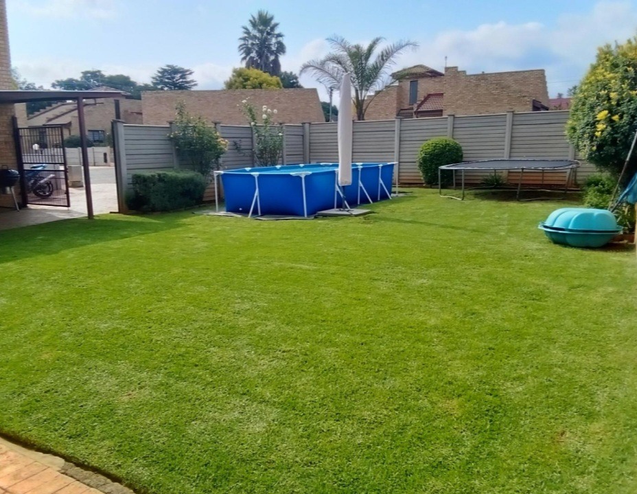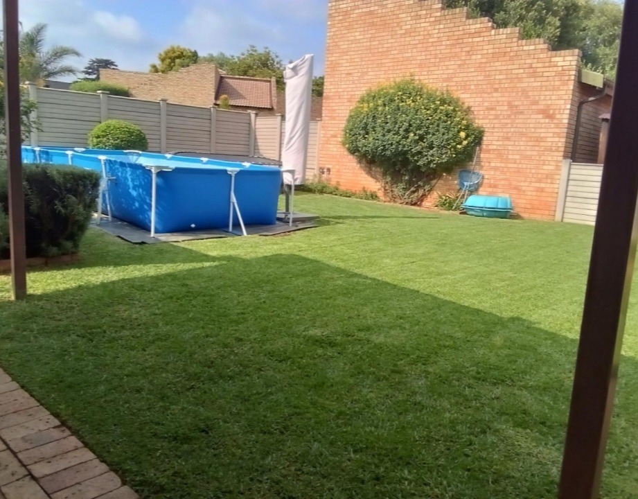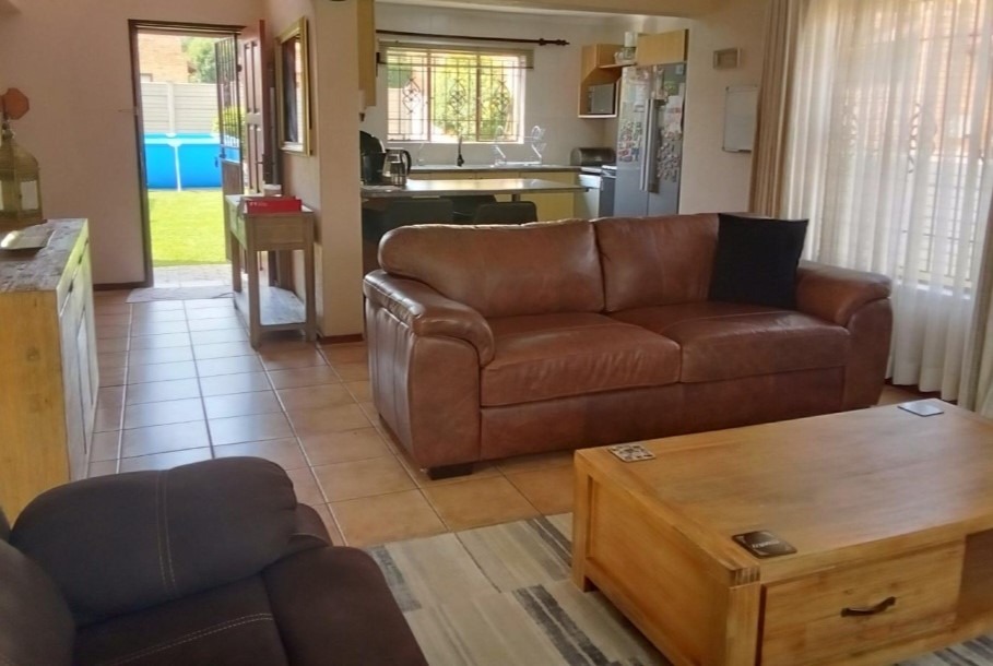 Externally, the property benefits from a private garden, offering a tranquil outdoor retreat. A notable amenity is the private swimming pool, presenting an excellent opportunity for leisure and recreation within the confines of the home. Parking provisions include a single garage, ensuring secure vehicle storage. The complex environment is conducive to pet ownership, with pets permitted, further enhancing its appeal to a broader demographic. Security is further augmented by the presence of burglar bars, contributing to peace of mind.
