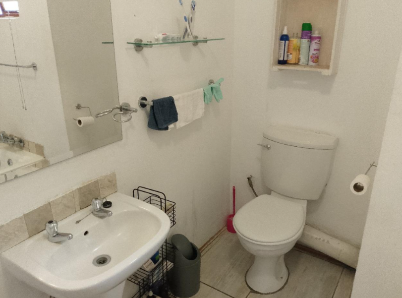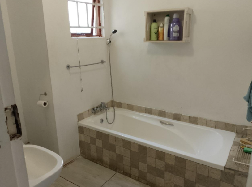 Accommodation comprises three comfortable bedrooms, each benefiting from natural light. One bedroom includes practical built-in wardrobes, providing ample storage. The property features two functional bathrooms, with one being an ensuite to a bedroom, accessible via a space-saving sliding door. The main bathroom includes a bathtub with a shower attachment, catering to everyday needs.