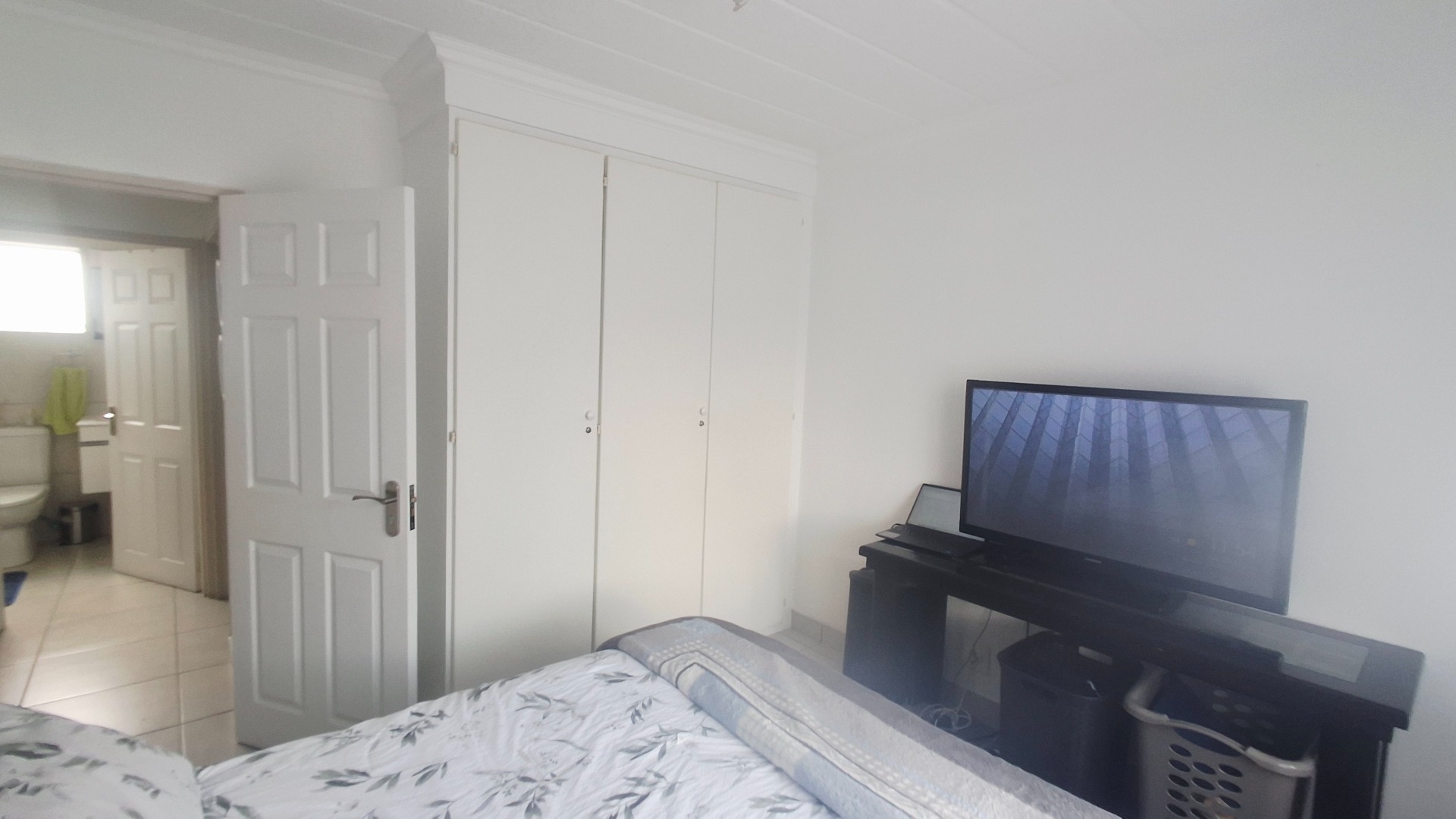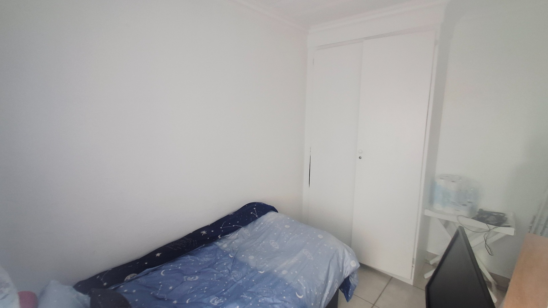 The contemporary kitchen offers sleek white cabinetry, dark countertops, a breakfast bar, and built?in appliances, along with dedicated space for a washing machine. Two well?proportioned bedrooms provide a clean and calming aesthetic, with the main bedroom offering generous built?in storage. A neat, well?appointed bathroom serves both bedrooms. Residents also enjoy access to a clubhouse, while 24?hour security, electric fencing, and security gates ensure peace of mind.