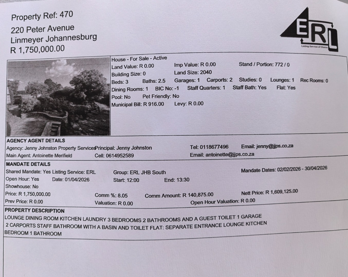 | Erf Size | 2 040.0 m2 |