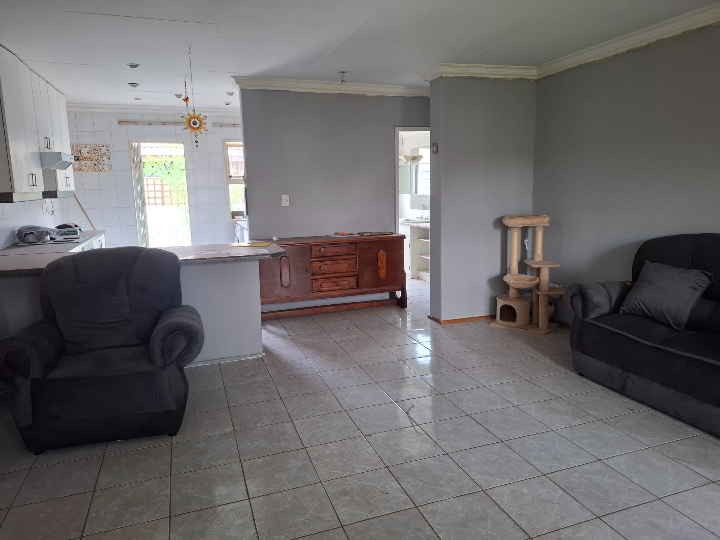 Step inside to discover a spacious open-plan design that seamlessly connects the lounge, dining area, and kitchen, creating a welcoming space ideal for both relaxing and entertaining. The kitchen offers ample cupboard space, a convenient breakfast nook, and a door leading out to a private courtyard—perfect for everyday practicality.