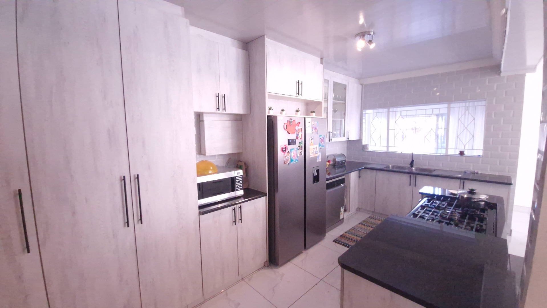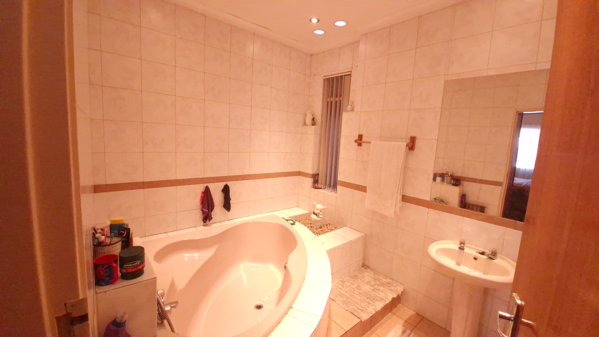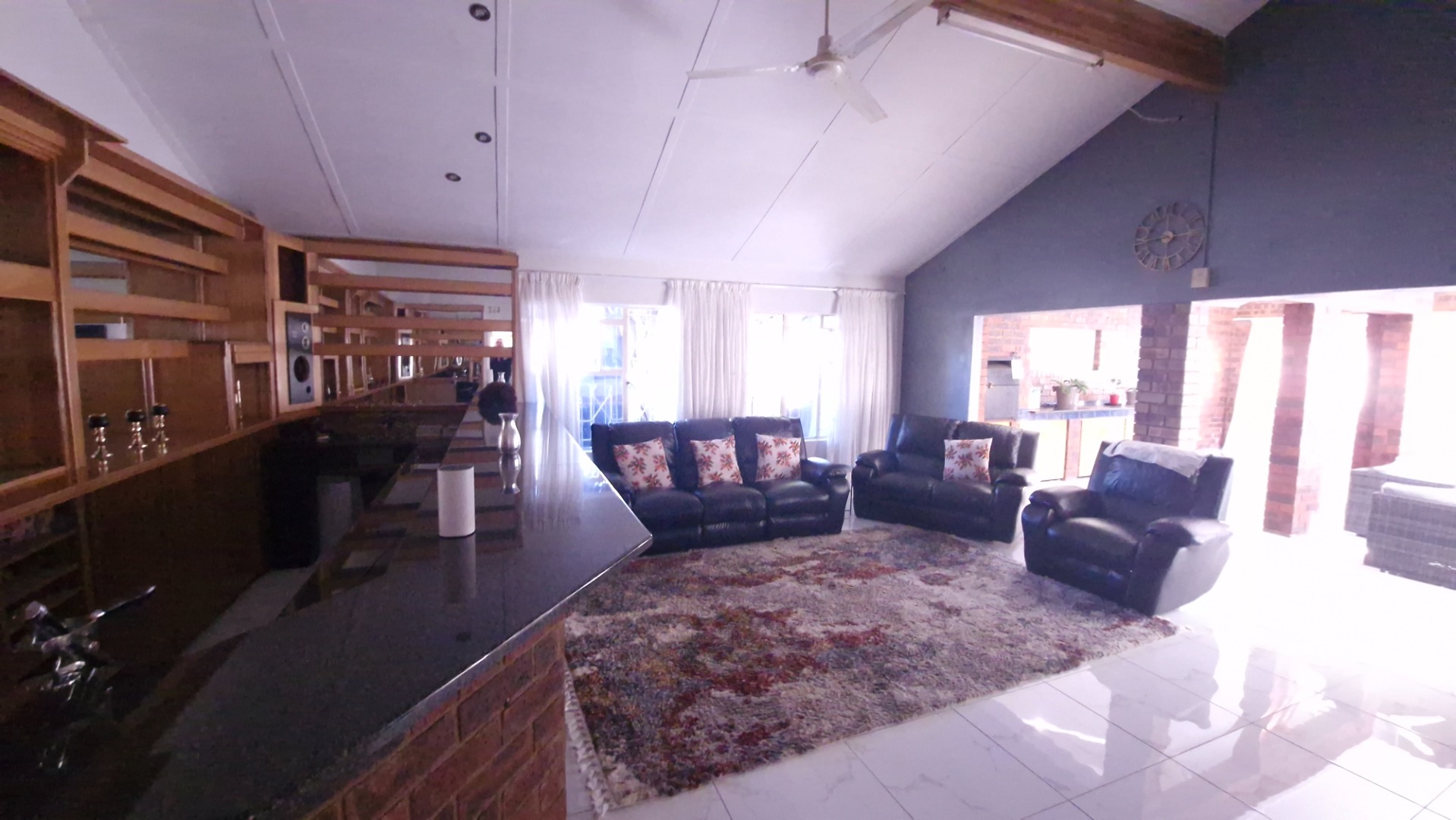 This family home offers 4 bedrooms with build in cupboards, 4 neat bathrooms, fitted kitchen, 2 lounges, diner and family room, bar area, build in braai, fire place, study area, pool, cottage with 2 bedrooms, bathroom, lounge and dining room which is ideal for extra income or additional family members, fully walled and paved driveway, garage and a carport that can fit 4 cars.