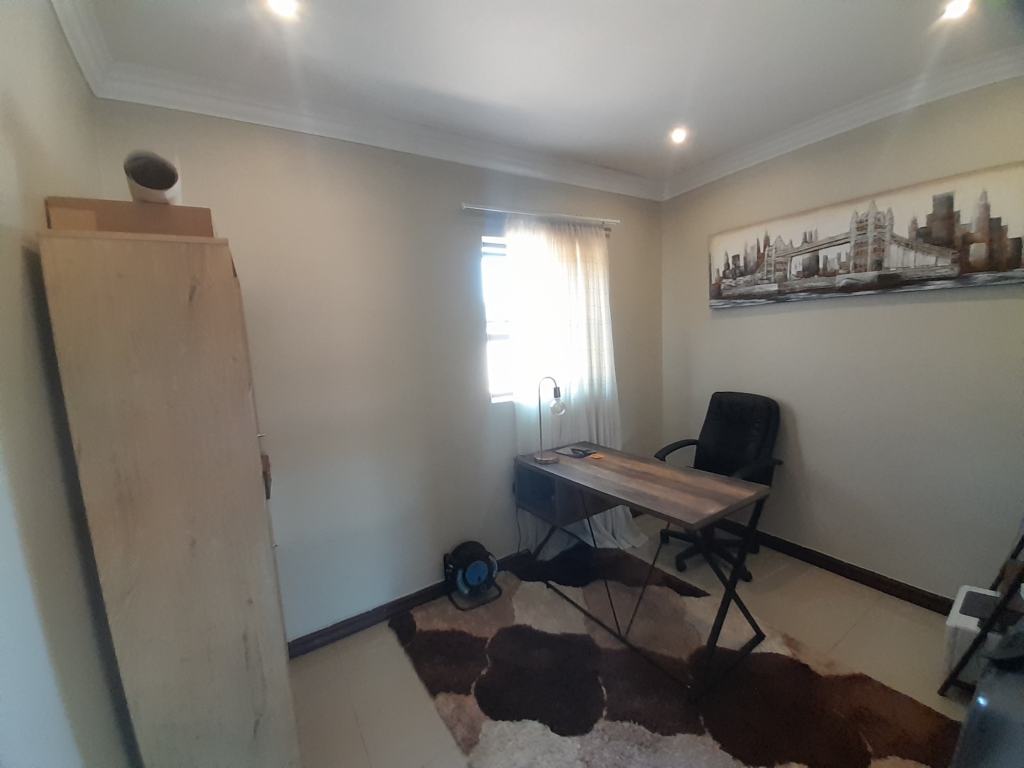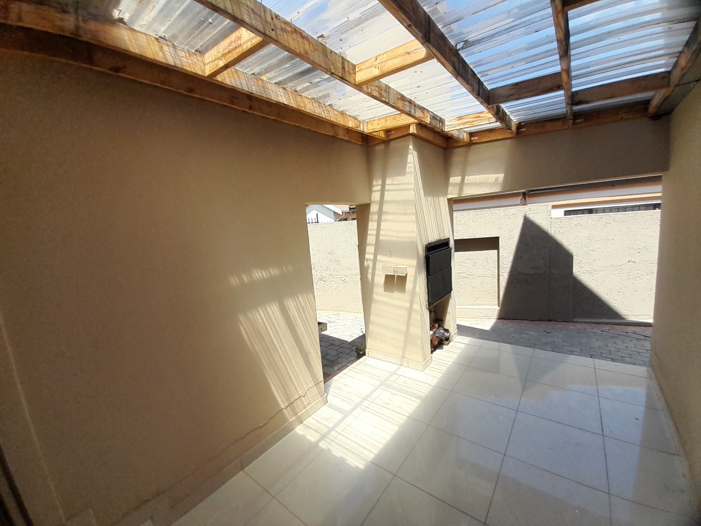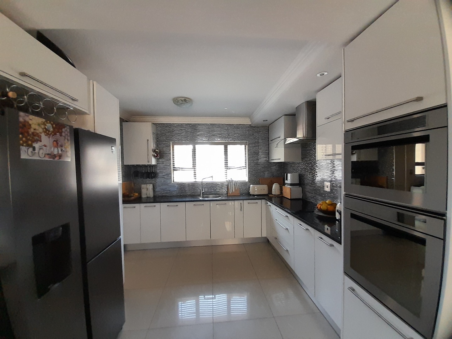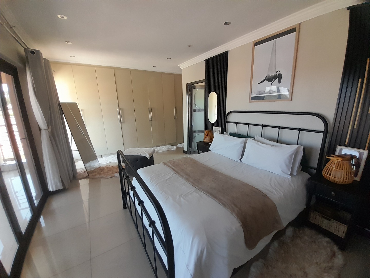 Discover this modern and inviting four-bedroom, three-bathroom residence situated in the suburban heart of Meredale, Johannesburg. Boasting a contemporary two-story design, the property immediately impresses with its well-maintained exterior, high perimeter walls ensuring privacy, and a convenient paved driveway leading to a double garage. The home's kerb appeal is enhanced by its neutral tones and dark-framed windows, with a charming balcony adding to its architectural character. Step inside to a thoughtfully designed interior, where spacious living areas flow seamlessly. The lounge is a highlight, featuring ample natural light, elegant recessed lighting, and a stylish chandelier, creating an ideal space for relaxation and entertaining. Adjacent to this, the modern dining room, complete with sleek furniture and sophisticated ceiling details, opens directly to the outdoor area via large sliding glass doors, promoting an effortless indoor-outdoor lifestyle. The sleek, modern kitchen is a culinary delight, equipped with white glossy cabinetry, dark granite countertops, and a textured grey backsplash. It includes built-in double ovens, an extractor hood, and a large black refrigerator, alongside integrated wine storage. A practical utility alcove provides space for laundry appliances, ensuring functionality meets style. The property offers four comfortable bedrooms and three well-appointed bathrooms, catering to family needs. Outdoor living is a pleasure with a covered patio featuring a built-in braai, perfect for entertaining guests year-round. The low-maintenance paved outdoor areas complement the property's modern aesthetic. Security is well-addressed with an access gate, security gate, and burglar bars, providing peace of mind. Located in a well-established suburban area, Meredale offers convenient access to local amenities and transport routes within Johannesburg. Key Features: * Modern two-story residence * Four bedrooms, three bathrooms * Spacious lounge with recessed lighting * Modern kitchen with built-in appliances * Elegant dining room with sliding doors * Covered patio with built-in braai * Double garage and paved driveway * High perimeter walls and security features * Low-maintenance paved outdoor areas * Erf size of 428 sqm