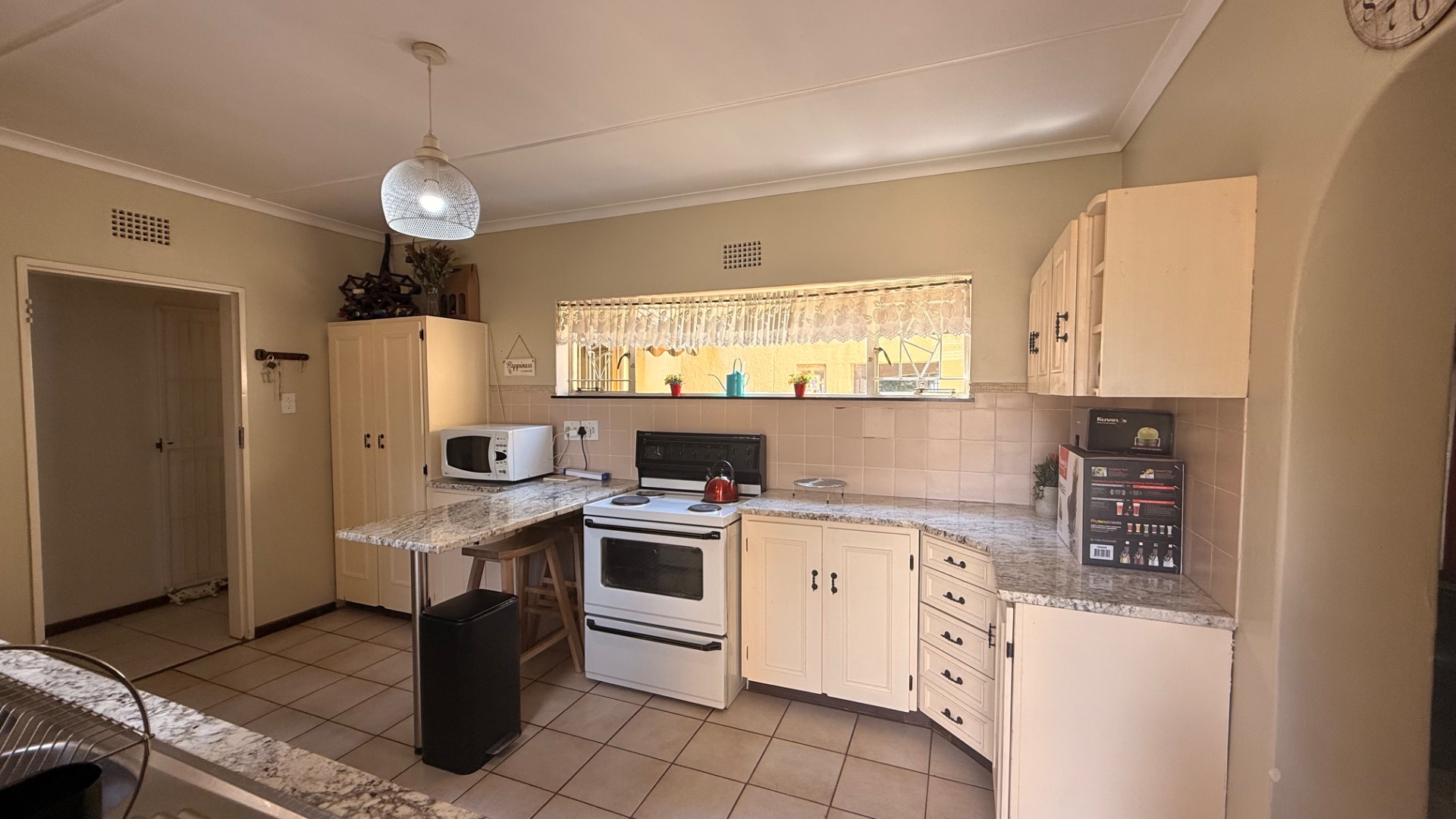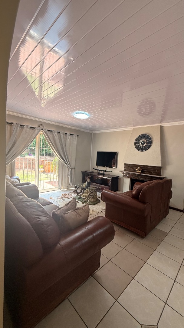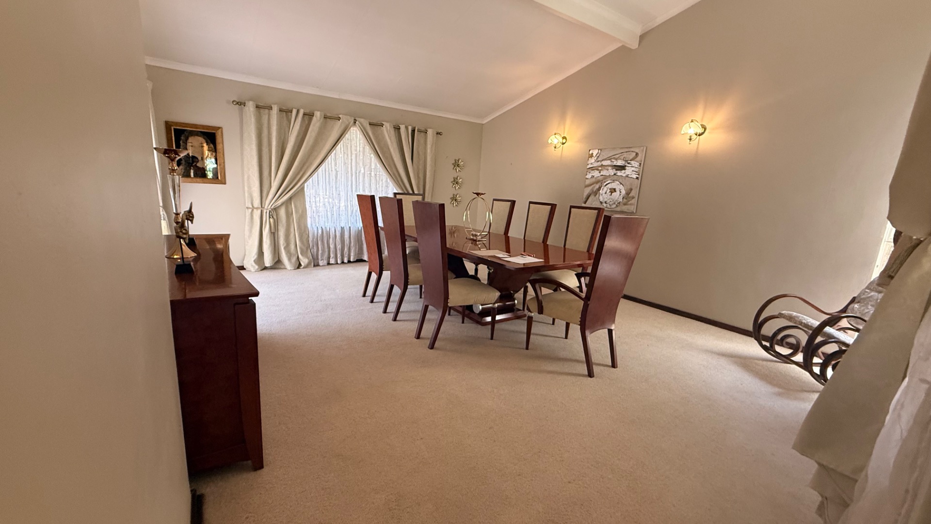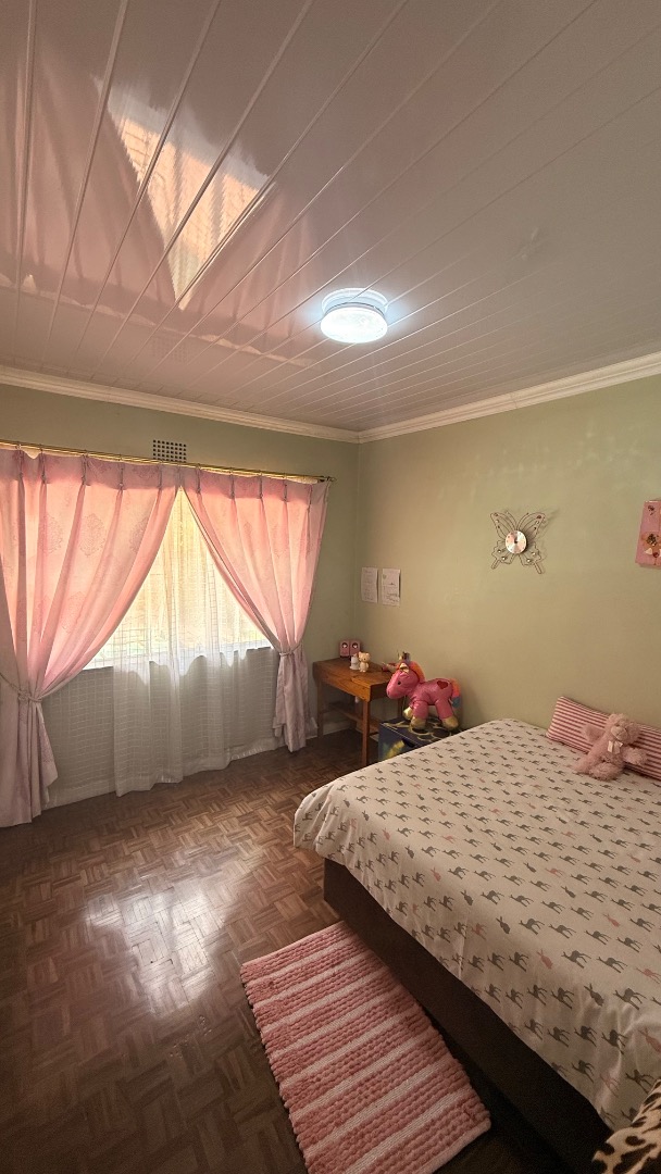 This inviting 4-bedroom, 2-bathroom family home in Meredale, Johannesburg, offers comfortable living with a blend of traditional charm and practical features. The property boasts excellent kerb appeal with a secure perimeter fence, access gate, paved driveway, and a well-maintained front garden framed by mature trees. Step inside to a bright entrance hall with tiled flooring, leading to generous living spaces. The home features a spacious lounge with tiled floors and a functional fireplace, offering direct access to the garden. An expansive dining room, complete with vaulted ceilings and neutral carpeting, provides an ideal setting for family meals and entertaining. The functional kitchen is well-appointed with cream cabinets, granite-look countertops, a breakfast bar, and ample natural light, complemented by a charming wooden stable door. The four bedrooms provide comfortable accommodation, with one featuring attractive parquet wood flooring and light green walls, while another offers a cozy space with wood parquet flooring. The home includes two bathrooms, one of which is an ensuite. Practical elements like tiled flooring throughout most living areas and security bars on windows enhance daily living. Outside, the property offers a well-kept garden and two dedicated parking spaces. Located in the established suburb of Meredale, this home provides convenient access to local amenities and transport routes within Johannesburg. Key Features: * 4 Bedrooms, 2 Bathrooms (1 Ensuite) * Spacious Lounge with Fireplace * Expansive Dining Room with Vaulted Ceilings * Functional Kitchen with Breakfast Bar * Tiled Flooring & Parquet Wood Flooring * Secure Perimeter Fencing & Access Gate * Paved Driveway & 2 Parking Spaces * Well-Maintained Garden