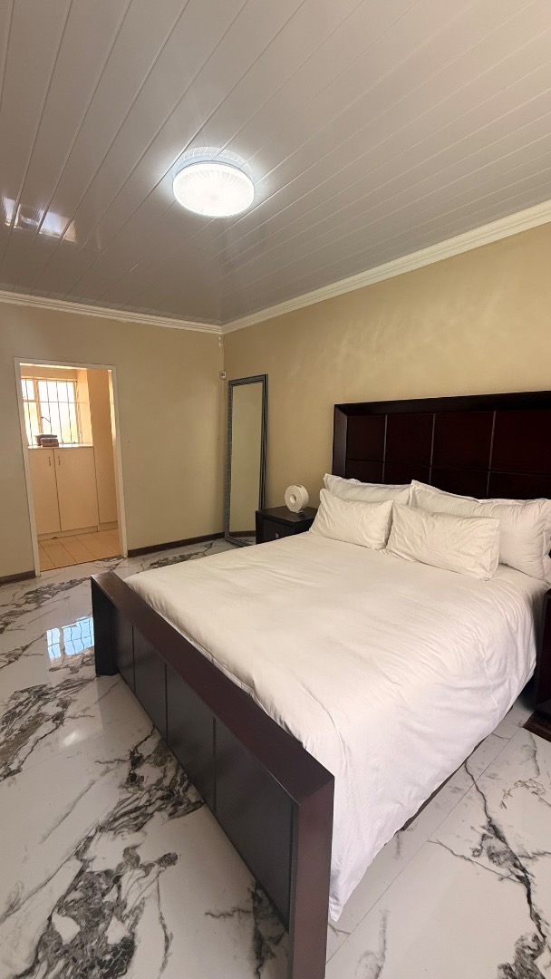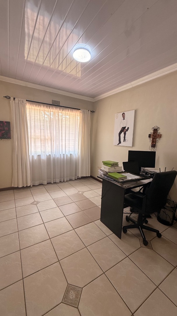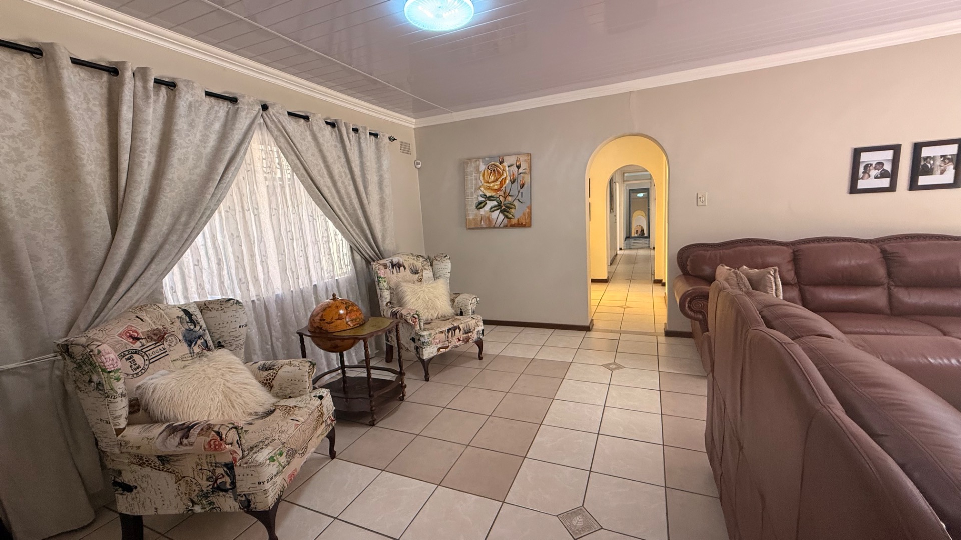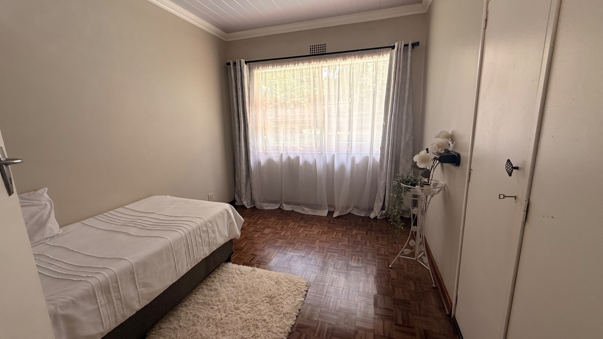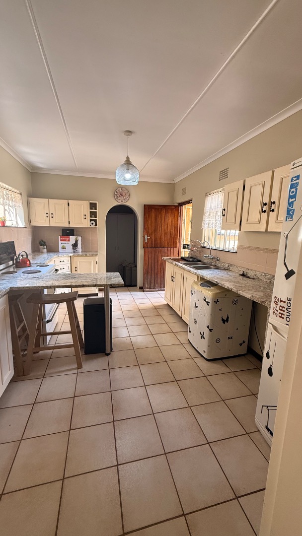This inviting 4-bedroom, 2-bathroom family home in Meredale, Johannesburg, offers comfortable living with a blend of traditional charm and practical features. The property boasts excellent kerb appeal with a secure perimeter fence, access gate, paved driveway, and a well-maintained front garden framed by mature trees. Step inside to a bright entrance hall with tiled flooring, leading to generous living spaces. The home features a spacious lounge with tiled floors and a functional fireplace, offering direct access to the garden. An expansive dining room, complete with vaulted ceilings and neutral carpeting, provides an ideal setting for family meals and entertaining. The functional kitchen is well-appointed with cream cabinets, granite-look countertops, a breakfast bar, and ample natural light, complemented by a charming wooden stable door. The four bedrooms provide comfortable accommodation, with one featuring attractive parquet wood flooring and light green walls, while another offers a cozy space with wood parquet flooring. The home includes two bathrooms, one of which is an ensuite. Practical elements like tiled flooring throughout most living areas and security bars on windows enhance daily living. Outside, the property offers a well-kept garden and two dedicated parking spaces. Located in the established suburb of Meredale, this home provides convenient access to local amenities and transport routes within Johannesburg. Key Features: * 4 Bedrooms, 2 Bathrooms (1 Ensuite) * Spacious Lounge with Fireplace * Expansive Dining Room with Vaulted Ceilings * Functional Kitchen with Breakfast Bar * Tiled Flooring & Parquet Wood Flooring * Secure Perimeter Fencing & Access Gate * Paved Driveway & 2 Parking Spaces * Well-Maintained Garden