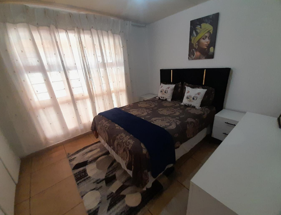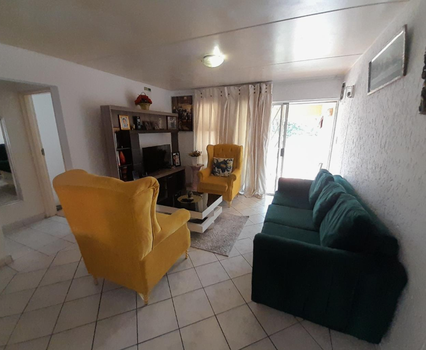 Discover comfortable living in this 74 sqm apartment located within a secure complex in Johannesburg. The open-plan layout seamlessly connects a spacious lounge, featuring tiled flooring and ample natural light from a sliding door, to a contemporary kitchen. The kitchen boasts modern white cabinetry, dark countertops, a stylish mosaic tile backsplash, and is equipped with a built-in oven, electric hob, and extractor fan. Double sinks and an integrated washing machine add to the convenience, making this a highly functional space. This apartment offers two well-proportioned bedrooms, each designed for comfort. One bedroom includes practical built-in wardrobes, while both benefit from good natural light and durable tiled flooring. The single bathroom is fully tiled and features both a shower and a bathtub, providing versatility for your daily routine. Step outside to your private patio, complete with terracotta-colored tiles and a security gate, offering a tranquil space to relax or entertain. Residents also enjoy access to a well-maintained communal garden and a sparkling swimming pool, perfect for leisure. The property includes one dedicated parking bay, ensuring convenience. Situated within a security complex, this home provides peace of mind with features like an access gate, security post, and security gates on the patios. The complex exterior is well-maintained with paved access roads, contributing to a pleasant living environment. Furthermore, the apartment is fibre-ready, ensuring high-speed internet connectivity for all your digital needs. The suburb of Mondeor offers a desirable suburban lifestyle in Johannesburg, known for its established community feel. The area provides convenient access to local amenities, schools, and major transport routes, making it an ideal location for residents seeking both tranquility and accessibility. Key Features: * Two Bedrooms * One Bathroom * Open-Plan Lounge * Modern Fitted Kitchen * Private Patio * Communal Swimming Pool * Secure Complex Living * One Dedicated Parking Bay * Fibre Connectivity