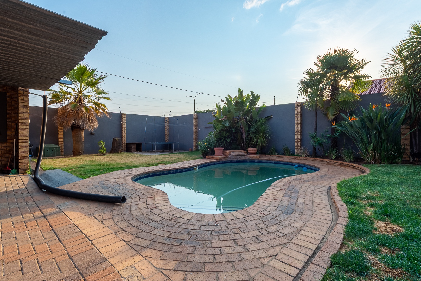 Step into this lovely suburban home in Mondeor, Johannesburg, and discover a fantastic lifestyle. Outdoors, a private swimming pool awaits for sunny days, complemented by a spacious covered patio for al fresco dining and entertainment – perfect for hosting. The paved and landscaped yard offers a neat space for relaxation. Inside, the welcoming atmosphere flows through two generous lounges and a dedicated dining room, all featuring clean, tiled flooring and ample natural light. Air conditioning keeps things cool, and a cozy fireplace adds warmth.