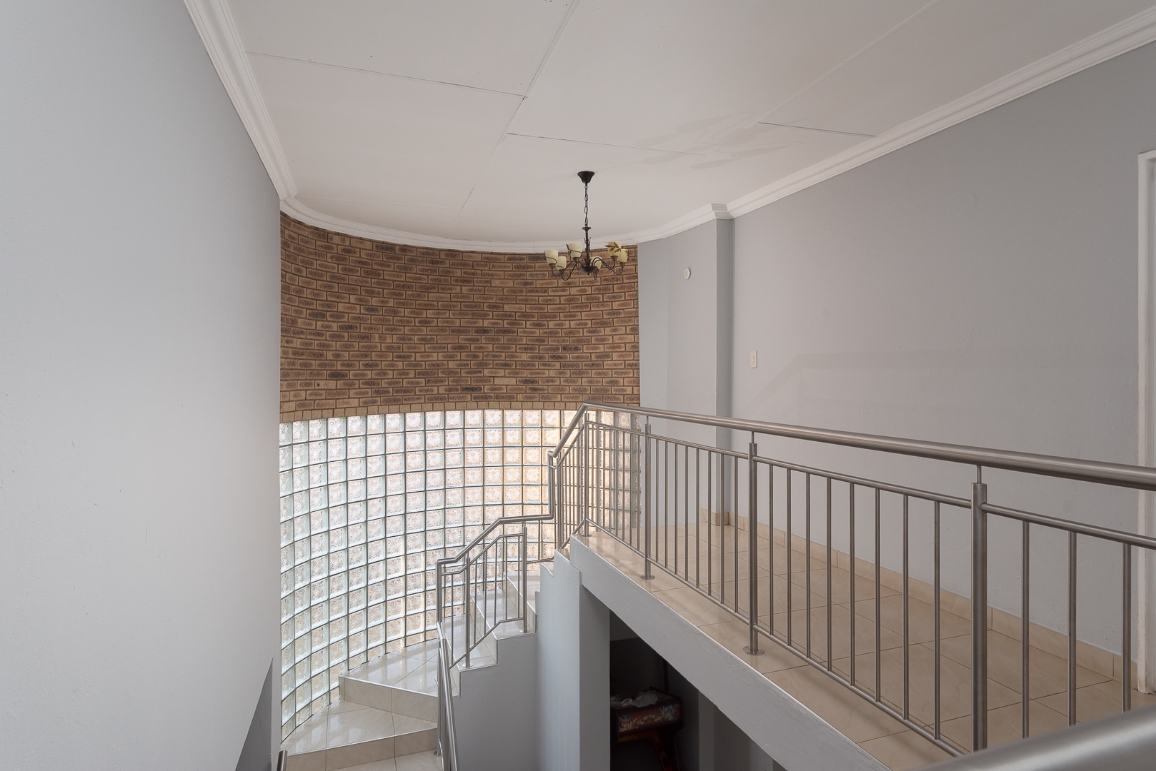 For your peace of mind, the property is equipped with an alarm system, an access gate, and electric fencing. Fibre internet is available. Parking is ample, with two garages and space for up to six vehicles or more. Practicality is enhanced with a dedicated laundry area / domestic room.