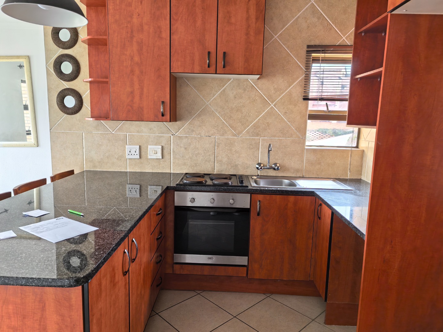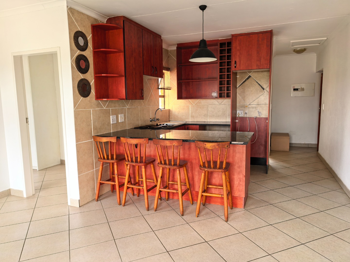 The apartment boasts a beautifully designed kitchen with modern finishes and ample cupboard space, making it both practical and stylish for everyday living. The bedroom is well-sized and includes built-in cupboards, while the bathroom is neat and functional with quality fittings.