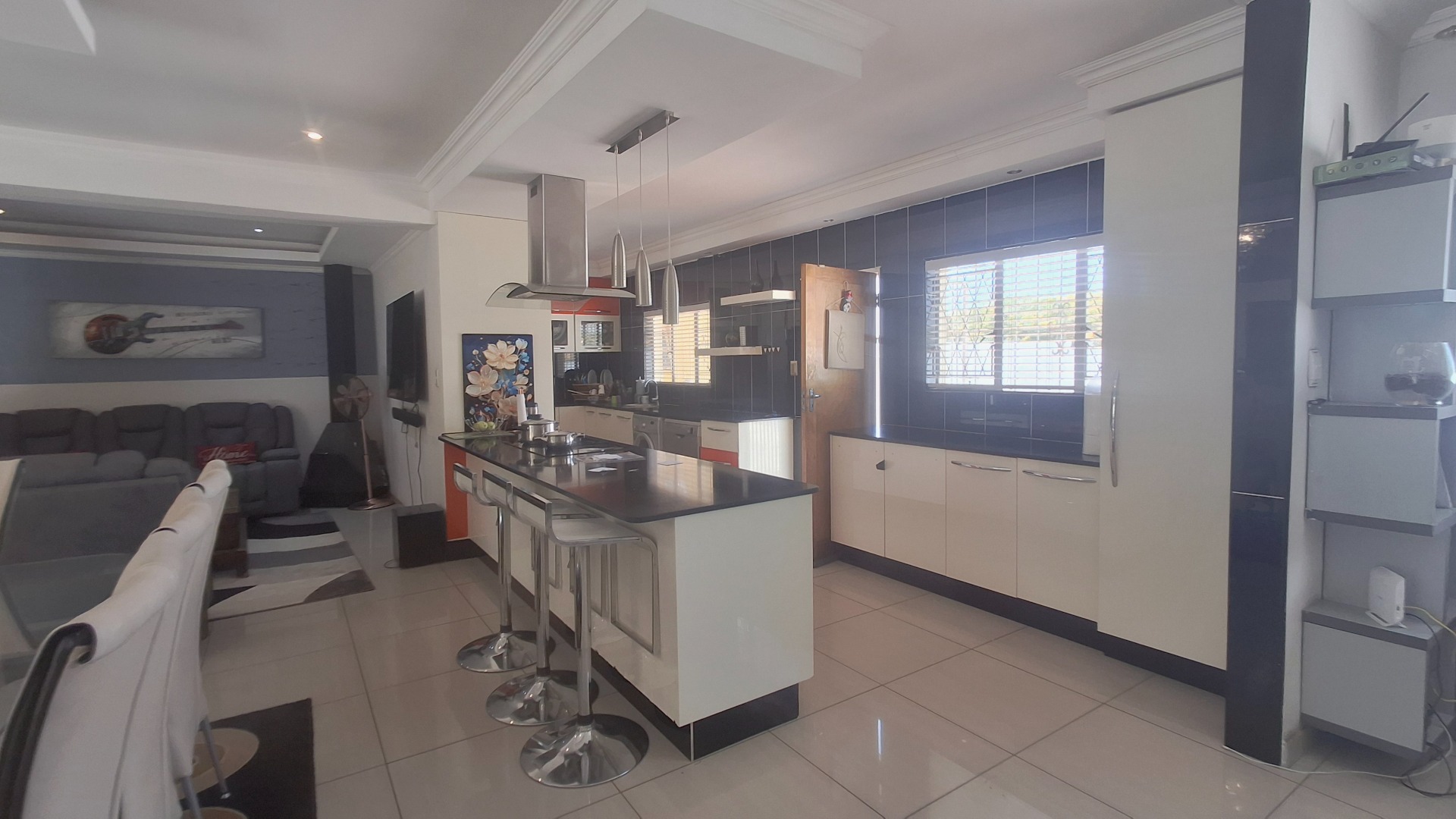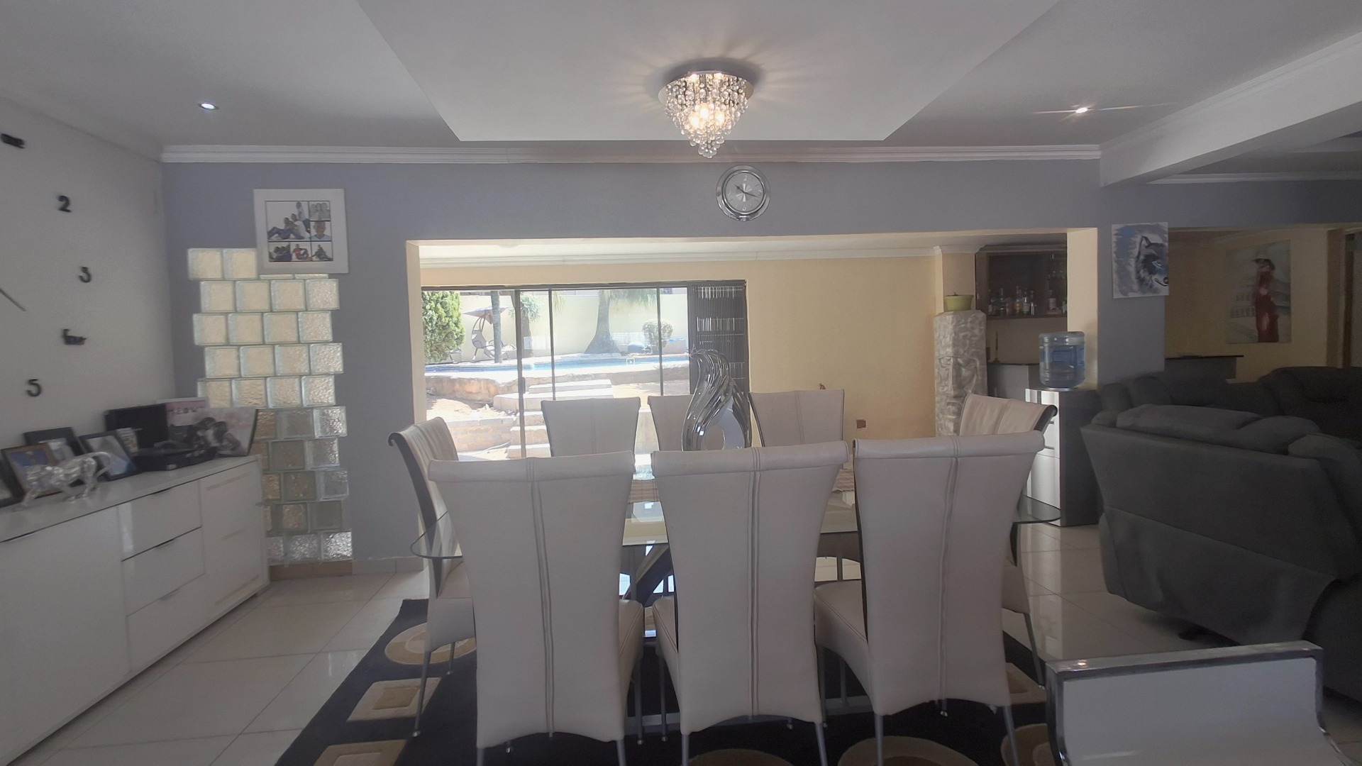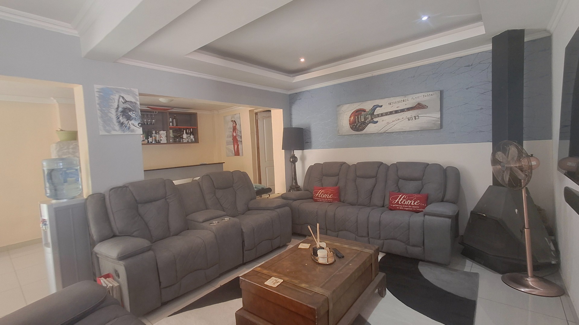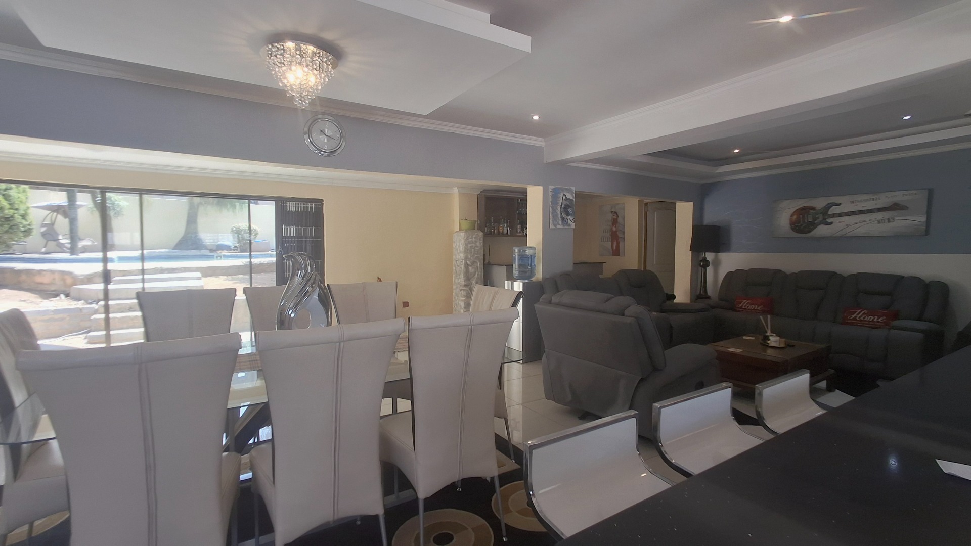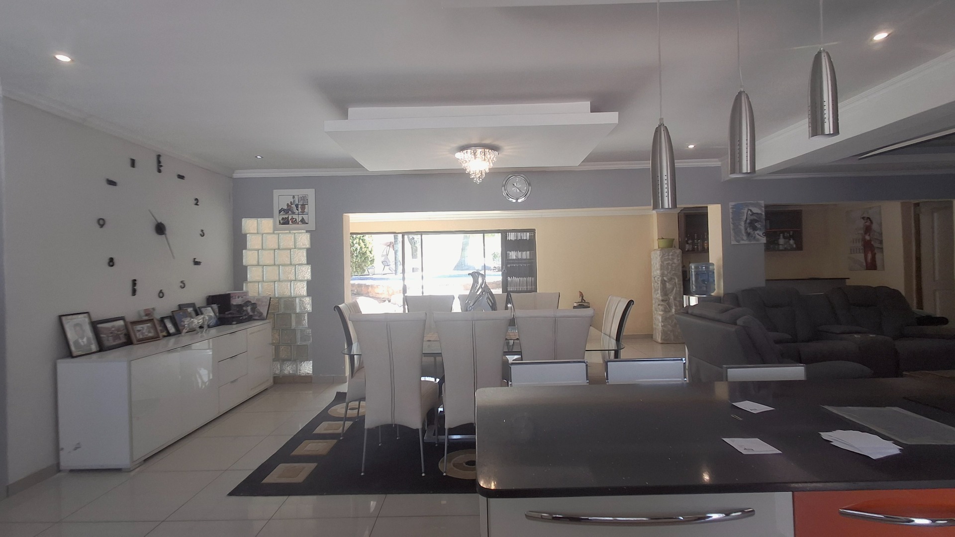 Discover this spacious four-bedroom, two-bathroom family home situated in the desirable Mulbarton suburb of Johannesburg. Set on a generous 953 sqm erf, this property offers a blend of comfortable living and excellent potential for modernization, presenting an ideal opportunity for those seeking to personalize their dream home. The interior boasts an inviting open-plan layout, seamlessly connecting the modern kitchen, dining area, and lounge. The kitchen features sleek cabinetry, dark countertops, and contemporary lighting, while the living spaces are enhanced by tiled flooring, recessed lighting, and stylish ceiling bulkheads. Large sliding doors invite abundant natural light and provide easy access to the outdoors, perfect for entertaining. A dedicated bar area and a cozy fireplace add to the home's appeal, creating a welcoming atmosphere for family and guests. Accommodation includes four well-proportioned bedrooms and two bathrooms, ensuring ample space for a growing family. The design prioritizes comfort and functionality, with modern finishes throughout the living areas. Outside, the property features a private swimming pool, offering a refreshing escape during warmer months. The secure perimeter, complete with high walls, electric fencing, and burglar bars, provides peace of mind. With three garages and four additional parking spaces, there is ample secure parking for multiple vehicles. While the exterior and landscaping present an opportunity for aesthetic enhancement, the mature trees and garden offer a tranquil setting. Mulbarton is a well-established residential area known for its family-friendly environment and convenient access to local amenities, schools, and major transport routes within Johannesburg, South Africa. Key Features: * 4 Bedrooms, 2 Bathrooms * Open-plan living with modern kitchen * Private swimming pool * 3 Garages and 4 additional parking spaces * Electric fencing and burglar bars * Fireplace and dedicated bar area * Tiled flooring and recessed lighting * Generous 953 sqm erf * Pet-friendly environment