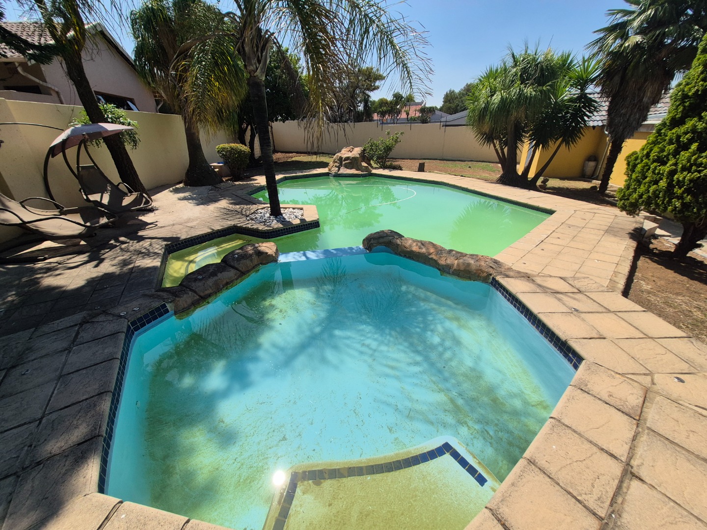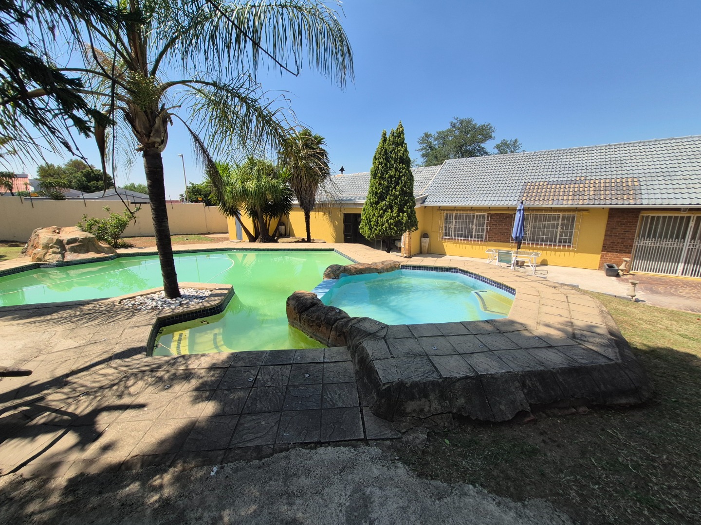Discover this inviting family home situated in the desirable suburban area of Mulbarton, Johannesburg. Boasting a generous Erf size of 953 sqm and a comfortable Floor Size of 196 sqm, this residential property offers ample space for modern living and entertaining. The interior features a well-appointed kitchen, a dedicated dining room, a spacious lounge, and an additional family TV room, providing versatile areas for relaxation and entertainment. The layout ensures a seamless flow between living spaces, catering to both everyday family life and social gatherings. A built-in bar adds a touch of sophistication, perfect for hosting guests. Accommodation comprises four comfortable bedrooms, ensuring ample space for the entire family. There are two bathrooms, with one conveniently being an en-suite, offering privacy and comfort. These private quarters provide a peaceful retreat within the home. Step outside to a private garden oasis, complete with a sparkling swimming pool and a built-in braai, ideal for outdoor entertaining and enjoying the South African climate. The property also benefits from extensive paving, three garages, and eight additional parking spaces, catering to multiple vehicles and guests. An outside toilet adds to the convenience for outdoor activities. Security is enhanced with an access gate, electric fencing, and a totally walled perimeter, providing peace of mind for residents. Mulbarton is a well-established suburban neighbourhood in Johannesburg, known for its family-friendly atmosphere and convenient access to local amenities and transport routes. Key Features: * Four spacious bedrooms * Two bathrooms (one en-suite) * Dedicated lounge and family TV room * Well-appointed kitchen and dining room * Inviting swimming pool * Built-in braai and bar * Three garages and eight parking spaces * Private garden with paving * Enhanced security with electric fencing and access gate * Totally walled property