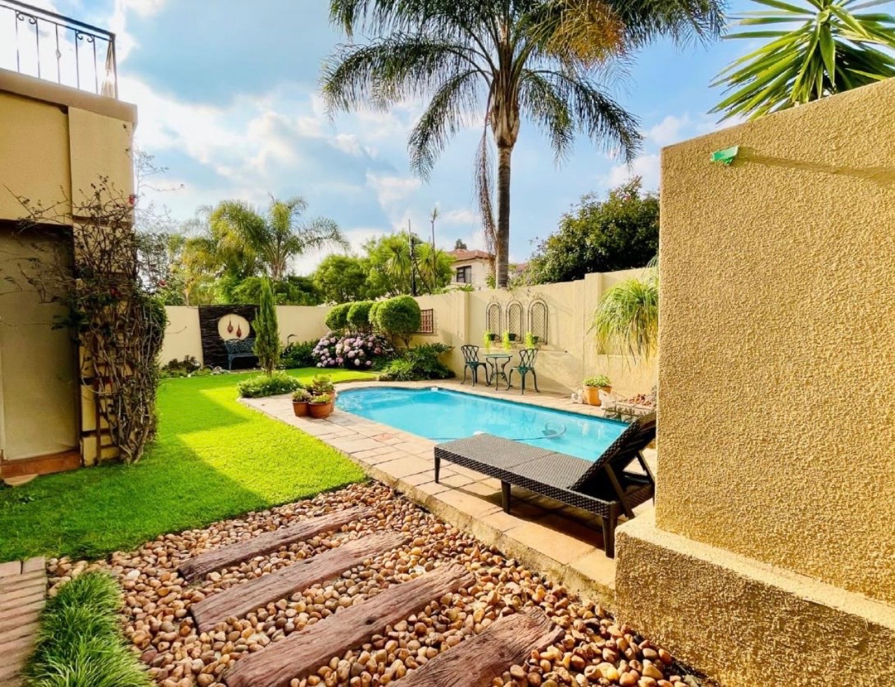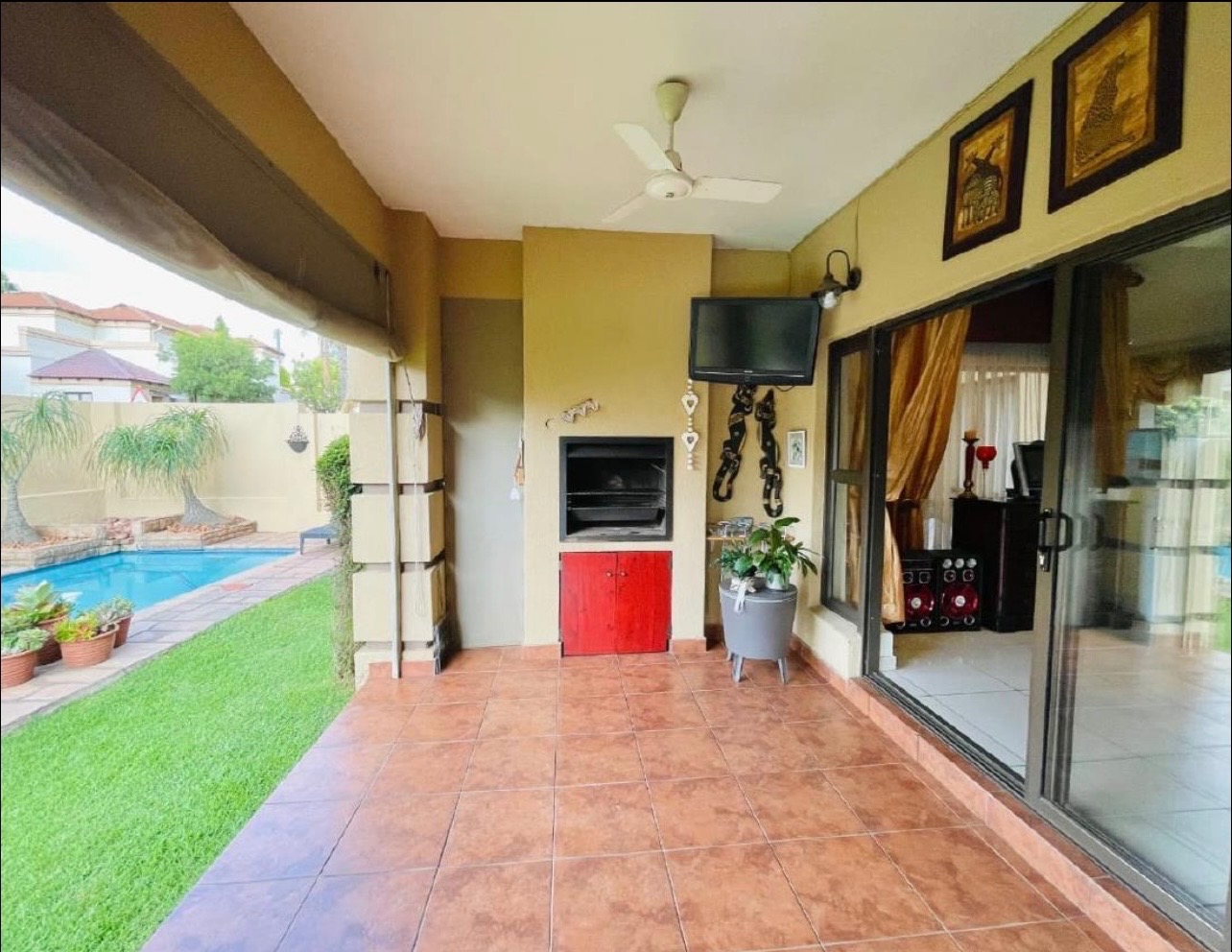 Step outside to a private oasis designed for relaxation and entertainment. The property boasts a refreshing swimming pool, ideal for cooling off during warm South African days, complemented by a built-in braai area perfect for outdoor cooking and social events. The established garden provides a serene backdrop, offering a tranquil escape, while the paved areas ensure low maintenance and accessibility. Parking is well-catered for with a double garage and an additional dedicated parking space, providing convenience and security for vehicles.