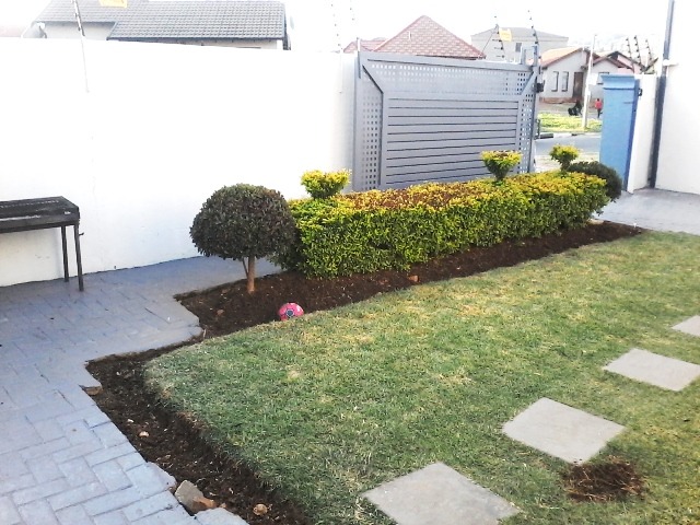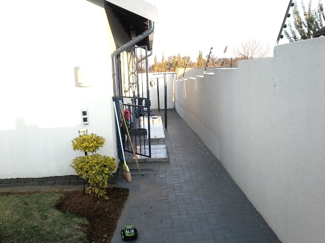 Externally, the property presents excellent kerb appeal with a clean, light-coloured exterior, a dark grey roof, and a neatly manicured front garden adorned with stepping stones. The 250 sqm erf includes paved areas and a well-maintained garden, offering private outdoor space for relaxation. A single garage provides secure parking, and the property is wheelchair-friendly, accommodating diverse needs.