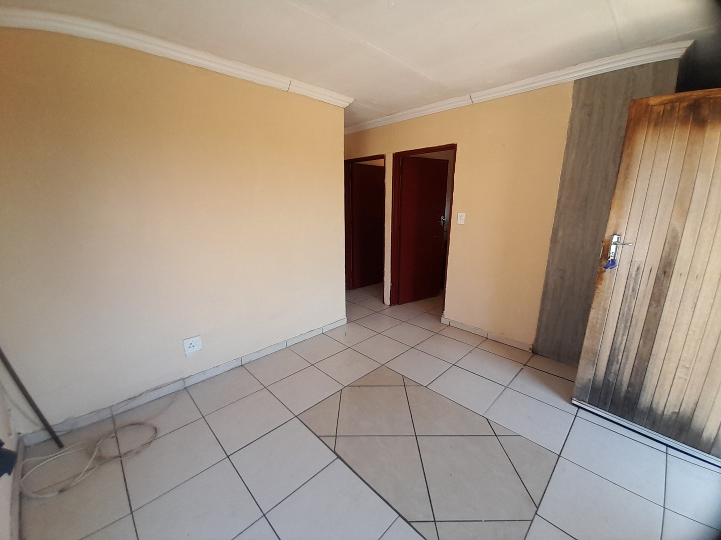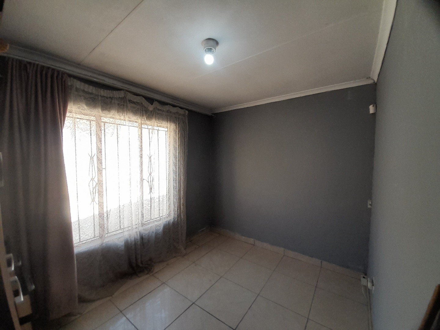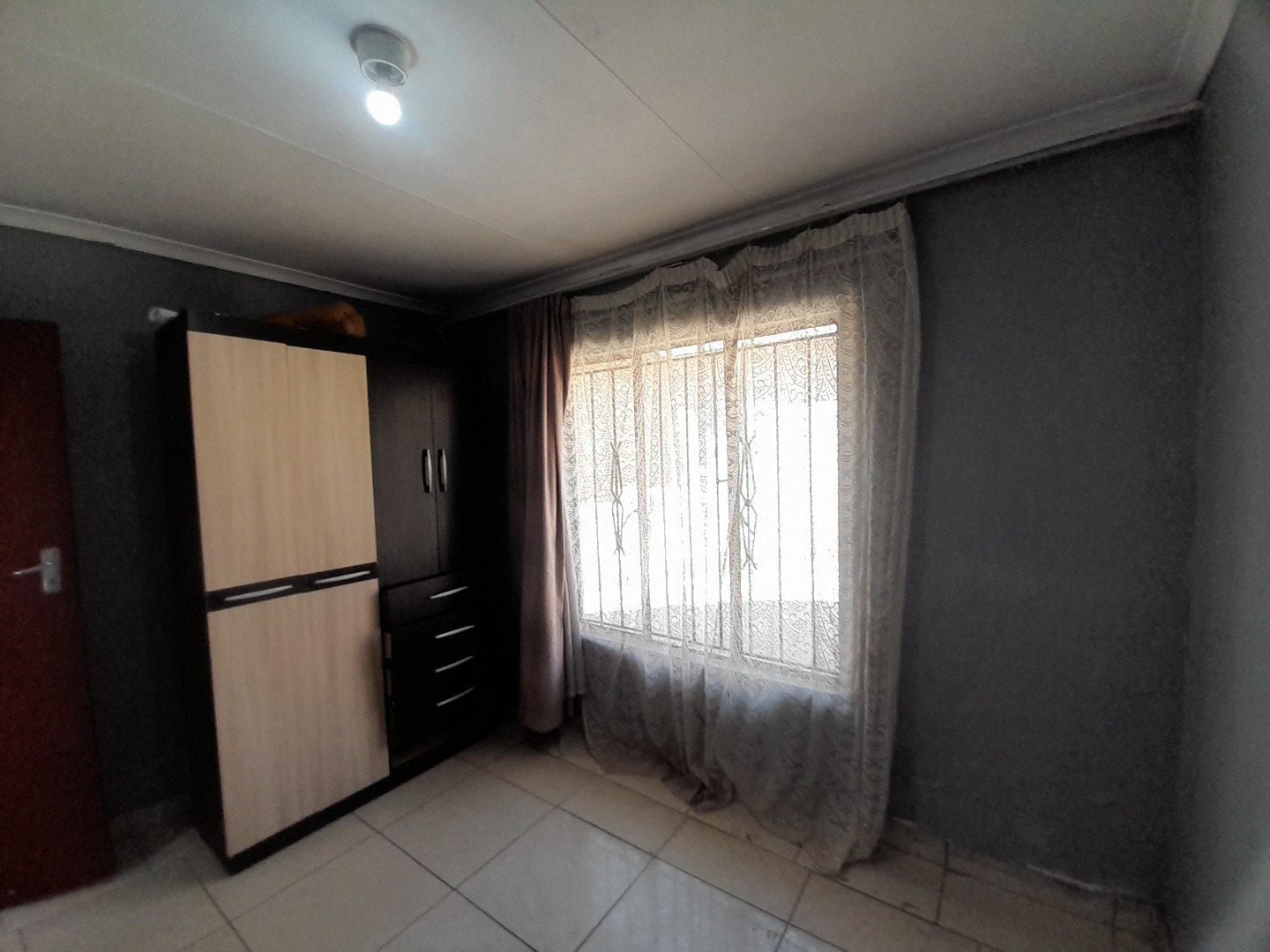 This charming 2-bedroom, 1-bathroom home in Naturena, Johannesburg, offers a practical and comfortable living space on a 220 sqm erf. The interior features a welcoming lounge area and a functional kitchen, both benefiting from easy-to-maintain tiled flooring. The kitchen is equipped with a built-in electric hob and oven, complemented by ample cabinet storage and a tiled backsplash, all illuminated by natural light from a window. The neutral wall tones throughout the living areas provide a versatile canvas for personal touches.