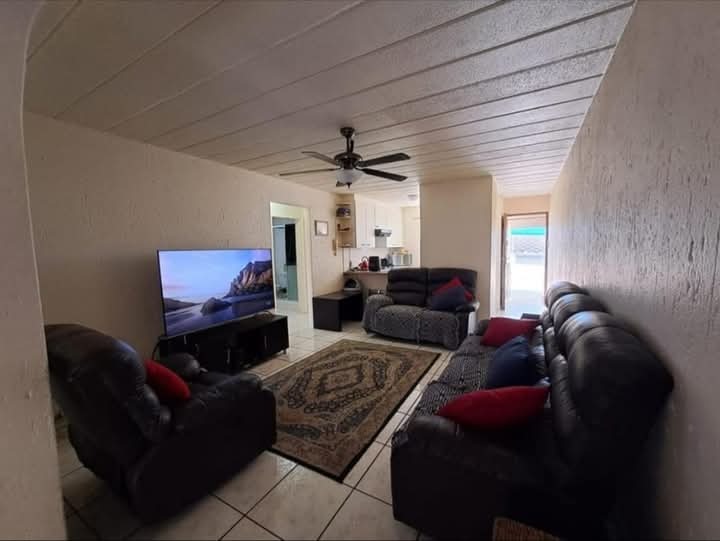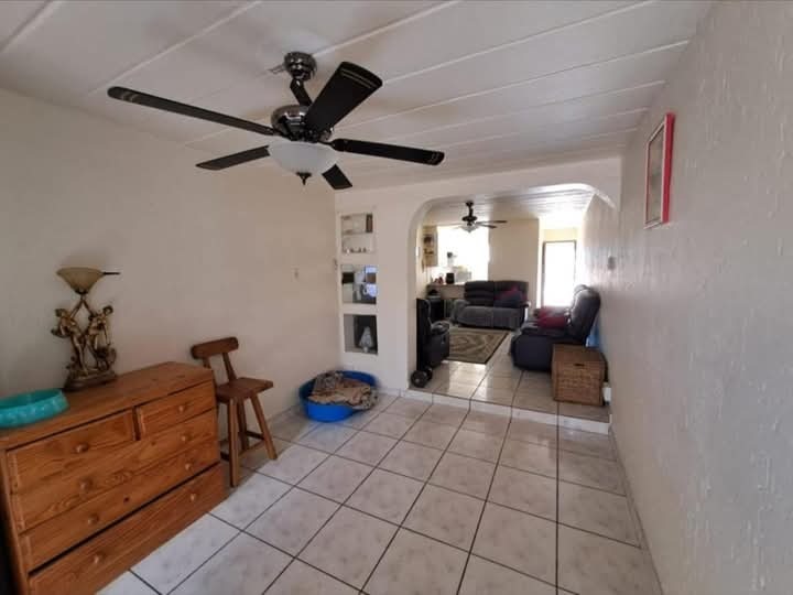 This starter home also boasts with a spacious tiled lounge area which leads directly into the sun-kissed dining area and through the sliding do out you are welcomed by a very well kept private back garden.